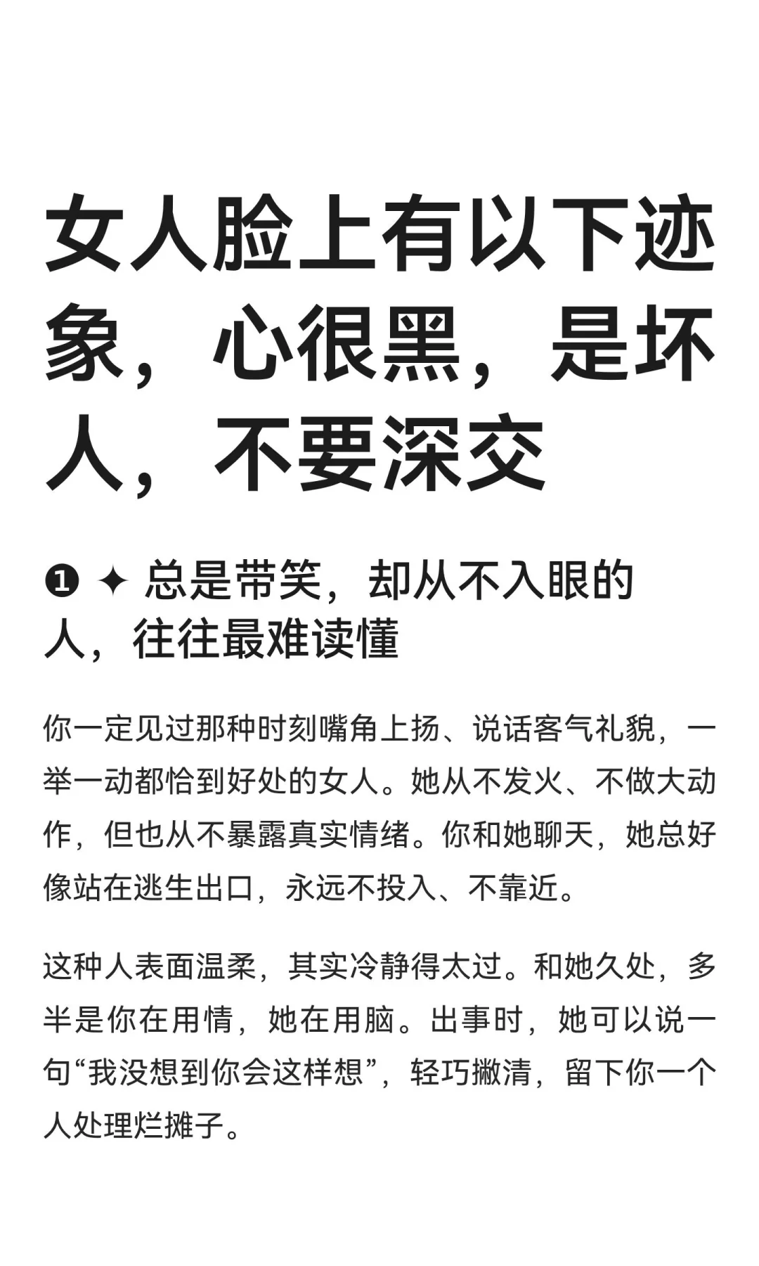 女人脸上有以下迹象,心很黑,是坏人,不要