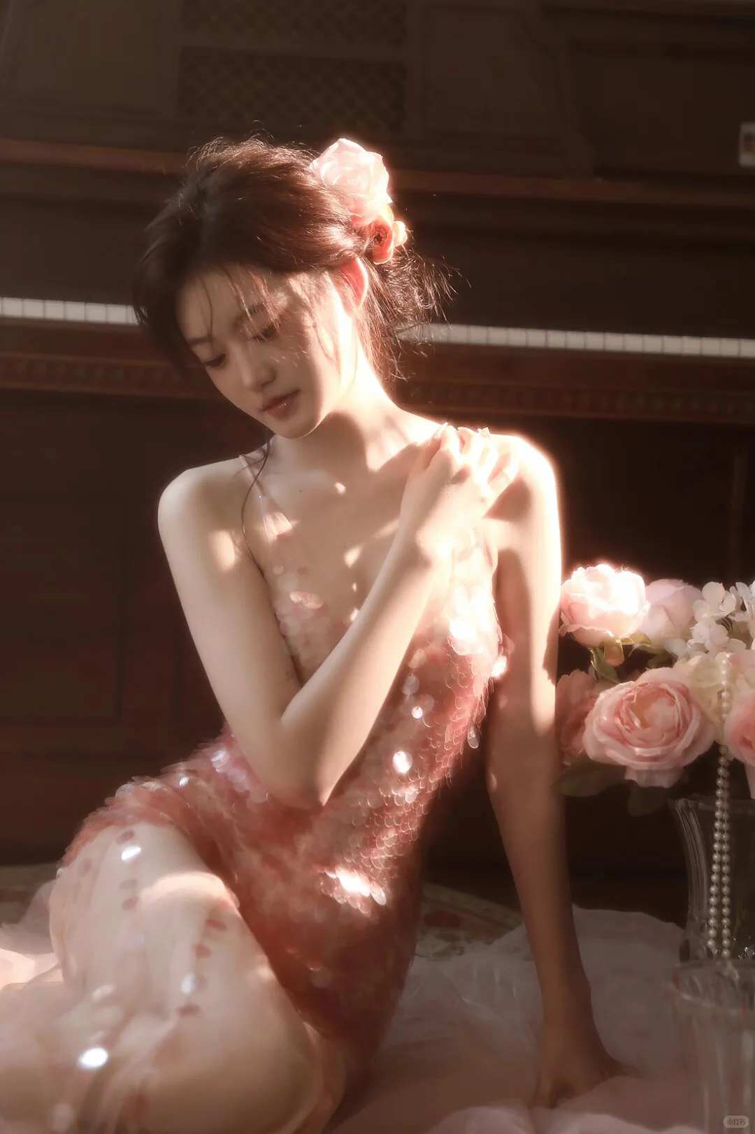 -\n粉色的亮片裙波光粼粼\n朦胧的光影若隐若现\n绮丽梦幻的氛围太浪漫了\n最美人鱼在这里!\n-\n🔥限时优惠🔥\n✔️全店5折拍【3服3造➕妆造全包】\n✔️活动价目表公开,没有任何隐形消费🈲\n✔️可定制套餐,根据每个顾客的情况,推荐合适的风格\n \n✅回复【1】礼貌问价\n✅回复【2】获取优惠\n-\n笔记摘自并授权