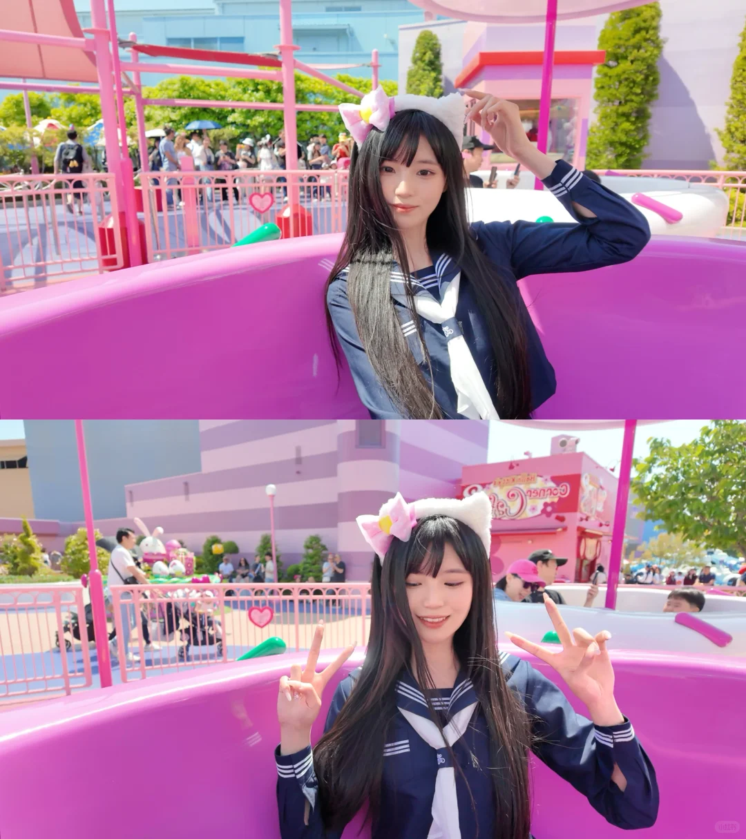 J人旅游和拍照不分家!这次又来更新啦必须美美出片\n【之前发过两篇还不错大家也可以参考哦~】\n \np1-p2东京塔🗼\n根据个人风格选择了不会出错的黑白裙,简约为主\n很多街拍人身上都有一个红色元素(吊带/裤子/鞋)主要是看天气!晴天☀️选白天/雨天🌧️晚上开灯更有氛围!\n \np3-p5东迪land🏰\n首选粉色可爱风小裙子,东迪land在我心里梦幻程度不亚于港迪🫧不管项目还是氛围都让我觉得在沉浸式体验公主🥹\n城堡是白蓝色为主(天气好日落时刻会变成橘粉色 阳光此时也斜射了 超好拍的!)\n \np6-p8富士山🗻\n这次选择了白色系 我是在富士山住了一晚所以准备了两套\np6p7贴近于千金风?裙子挺长的比较保守 外套选择了白色毛毛 显得随意一点hhh由于没去湖边就没特意出片(瘦版白色大衣外套我觉得也蛮好看)\np8比较现代精致点?可以拍拍罗森探探店什么的ovo\nps:富士山真的可遇不可求了……时而出现 时而不出现 雾很大当时查的是能看见结果也不太稳定!\n \np9-p11大阪USJ🌏\n上一次红白!主要为了配合任天堂风格\n这一次选择百搭的绀色水手服!和Kitty很搭!强烈推荐大家去坐那个hellokitty转转杯 粉粉的好出片!而且排队时间很短哦~裙子是中长超过膝盖,玩项目也很方便(这种卡通感和任天堂也挺配的,小黄人也很🉑,哈利波特复古城堡风也能搭上!…感觉这次穿搭拍照性价比更高…)\n \np12-p14清水寺👘\n清冷感的蓝色和服 饱和度很低很复古!ccd尤其出片📷\n其实黑金/白金振袖和服也挺合适的!拍出来也挺高大上的,但是当天我们行程比较赶就选择了日常风,小清新也不错~专门找好看店铺酒店拍照的话还是推荐振袖!!(之前有说过我个人感觉关西-京都更适合复古的和服,关东-浅草寺更适合明艳一些的和服/浴衣)\n \np15-p16🌳\n当天去了京都的三千院和琉璃光院 都是佛教禅意风格浓重的地方 能拍的风格太多了 中式、新中式、复古风、朴素一点的和服…(我这风格复古又不复古的…纯自己喜欢觉得好看hhh)里面就是很典型的日式庭院🏡只要不太现代街头我觉得都挺好看~\n \np17-p18大阪Citywalk🏯\n去了心斋桥、道顿堀,黑门市场、大阪城市公园\n主要以休闲百搭为主 根据个人风格选择了白色日常一点的裙子(个人感觉白色更上镜出片!)\n \n#日本拍照 #旅游穿搭 #日本旅行