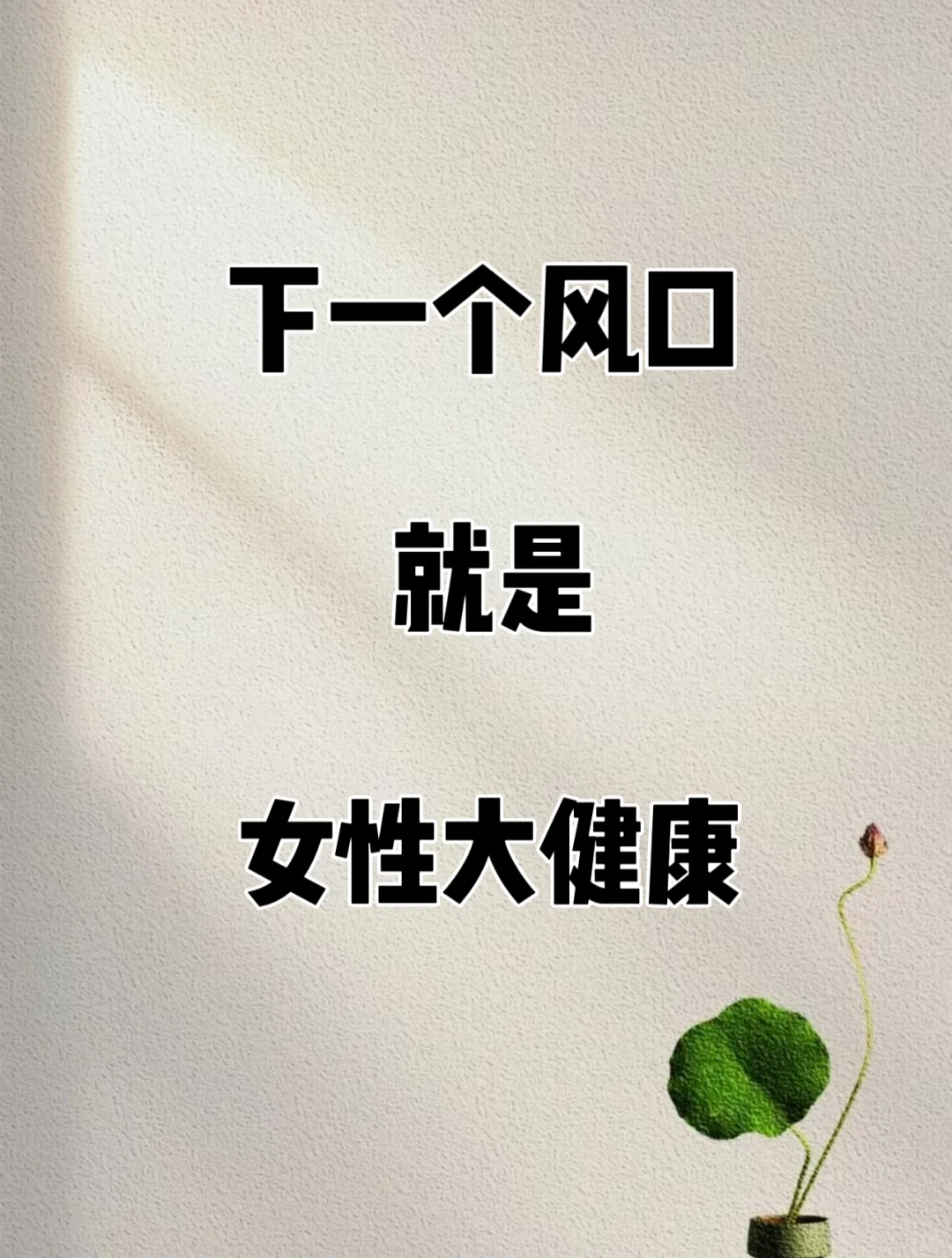 2024下一个风不再是直播,而是女性大健康!\n这些年大家应该都知道女性市场,但是大家不知道有没有听说过女性生殖大健康赛道呢?做为一个在女性生殖大健康行业摸爬滚打12年的经验总结,在这里分享一下我的逆袭经验,避免和我一样想创业的宝贝们踩坑坑!\n2024年下一个风口是女性生殖大健康项目,女性生殖大健康是一个空白赛道,做的人少,一片蓝海,处女地!我们只开垦了冰川一角,市场潜力巨大,因为女性大健康是一个私密赛道,是一个与时俱佳的赛道!\n其次女性生殖大健康这个赛道市场大,港需要求,复购快,女士购物爽快,一旦认可,终身客户,现在的人对健康和生活品质质量要求越来越高,再说正常赛道模式简单易复制,咱们都是普通人,没有慧根只要会跟,踩着风口都能飞起来!\n现在的女性生殖大健康不像以前卖保健品了,低俗,而是顺应国策,升级为大健康了,国人保养意识增强,相当于8~10年前的轻医美,微整形,美业女性S护以及脸部K衰了,现在往后8~10年,这是一个风口和趋势以及红利期!\n如果你也看好女性生殖打健康行业,大胆的尝试吧!去行动和开发,想都是问题,做才有答案!如果有疑问的话可以说处来,也可以打520,或者S✉️我#女性生殖大健康#女性智慧 #女性创业交流