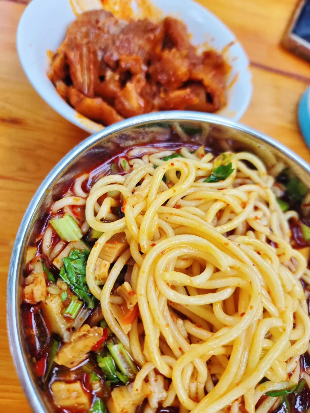 邛崃白鹤山,名不见经传的地方,周末爬了一下,合适的高度,带小朋友爬刚刚好。\n半腰的寺庙翻新过,是我见过的色调最阳光,空间尺寸最舒适的寺庙。\n白鹤山有专门的步道上山(图7),当然我们也是爬上去了才知道的,不过没关系,下次可以一试,看上去很有趣的样子。\n山上很多虫,各种虫,花宝是不怕的(图8),大家仔细找找??\n另外,强推邛崃美食!!!这一把牛肉,太绝了,毫不夸张我一个人能吃100串!!碗碗香买的,我现在是铁粉。还有早上的荞面和酱油三鲜清汤面➕钵钵肉,不说了,值我30个感叹号!!!!!\n#去山里过个周末 #藏在山里的美景 #一周一座山 #邛崃 #邛崃美食 #在上班和上进中选择上山 #谁会拒绝大自然呢 #去山林吸氧 #见人不如见山 #周末逃离城市