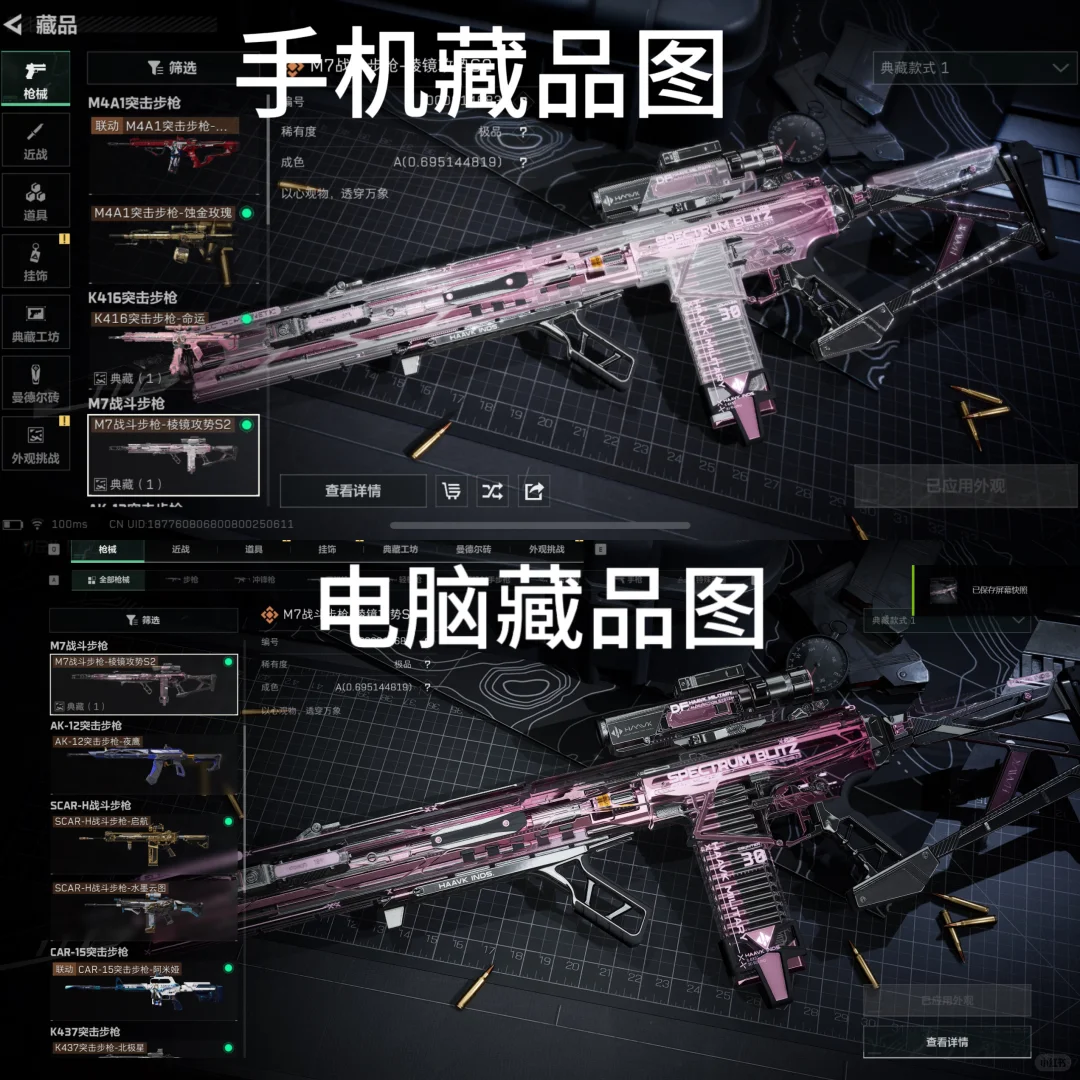 9.26晚更新 靶场截图+电脑/手机端对比\n想看靶场录屏的可以移步主页\n——————————————\n陪跑5天,收心!![心心眼R]最开始钟情的是优品黑粉,可惜抢不到w以下的,1w5直购优品s又感觉有点亏,在小红书搜了两天m7粉模板,对比了五六把,最后对这个模板一见钟情啦~\n还想要一把粉钻/白钻,等一两个赛季价格打下来再说,希望炼金大佬们速速发力\n#三角洲行动 #三角洲行动棱镜攻势S2 #M7棱镜攻势2