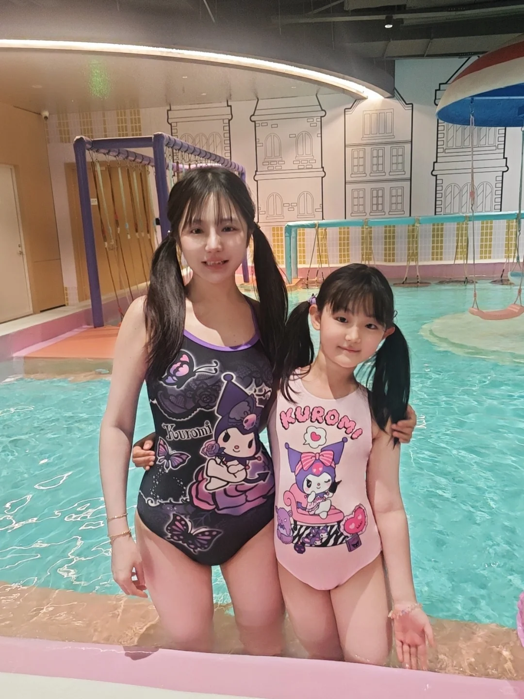好看的泳衣才是坚持游泳的动力呀\n两只库洛米简直是泳池最靓的崽\n要多游500米啦\n \n