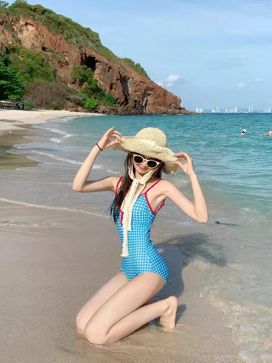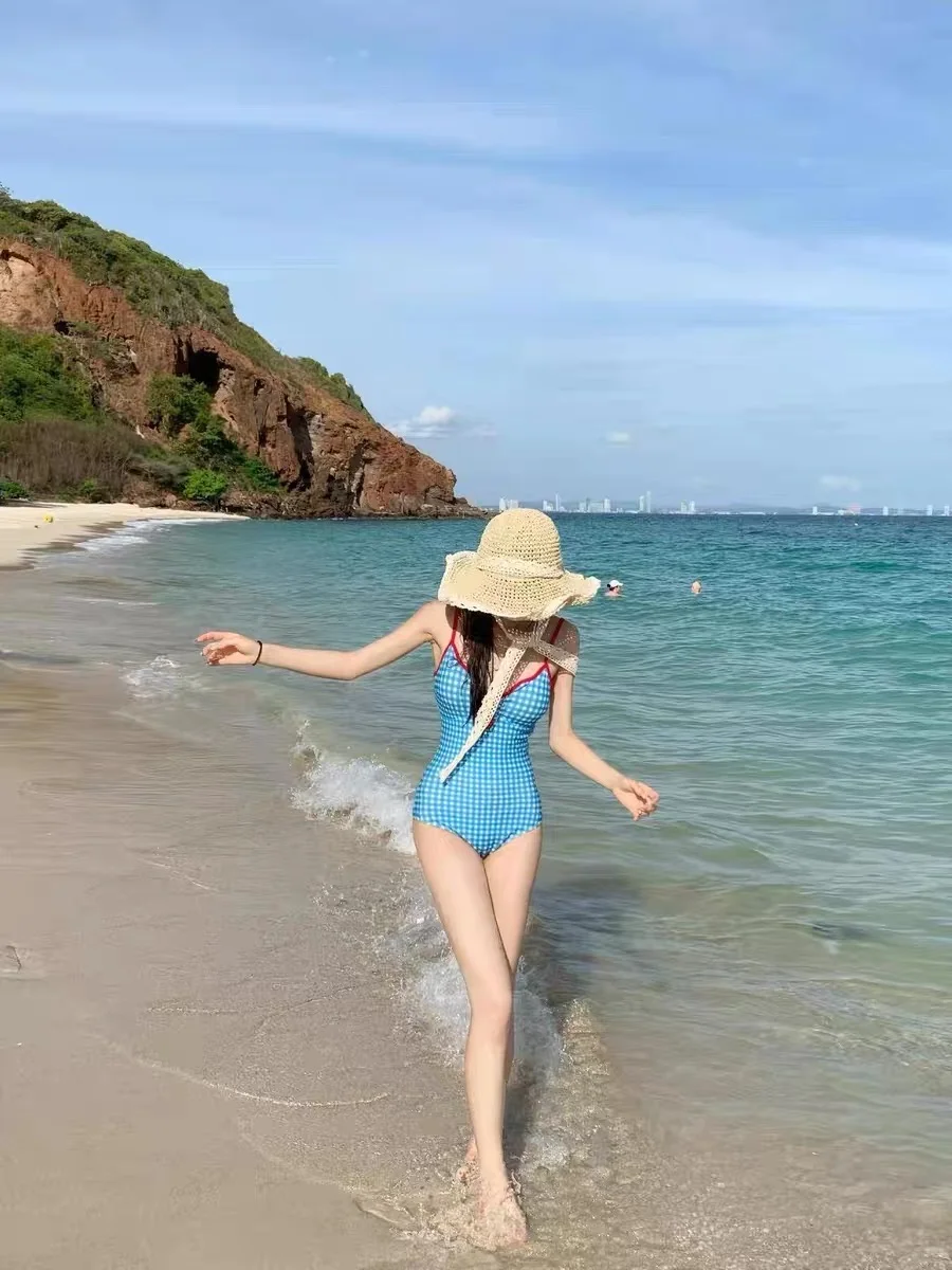 🔥娜扎同款蓝格连体泳衣|遮肉显瘦天花板💙\n姐妹们!👙这款蓝格连体泳衣也太绝了吧!!\n▪️高级感蓝格配色\n清爽蓝白格纹 夏日氛围感拉满🌊\n显白不挑肤色 黄皮姐妹也能驾驭\n海边拍照直接c位出道📸\n▪️遮肉显瘦神设计\n高腰剪裁+立体收腹\n小肚腩肉肉一键隐形✨\n梨形身材的本命泳衣没错啦\n▪️心机露背设计\n保守又不失小性感\n大露背交叉绑带 背影杀绝绝子\n▪️多功能实穿场景\n游泳度假️⛱️温泉泡澡🛀\n外穿搭配短裤也超时尚\n一件多穿不要太划算!\n#娜扎同款 #连体泳衣 #遮肉显瘦泳衣 #泳衣推荐 #度假穿搭 #海边拍照 #泳衣穿搭#泳衣分享 #泳衣种草 #泳衣女