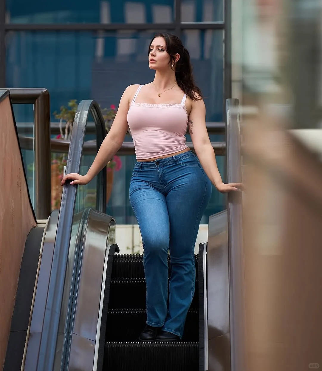 身穿紧身牛仔裤、搭配粉丝吊带的印度少女,五官姣好、身材玲珑,给人一种健康自信的美感!\n \n这种身材和状态,无论男女都喜欢吧!\n \n