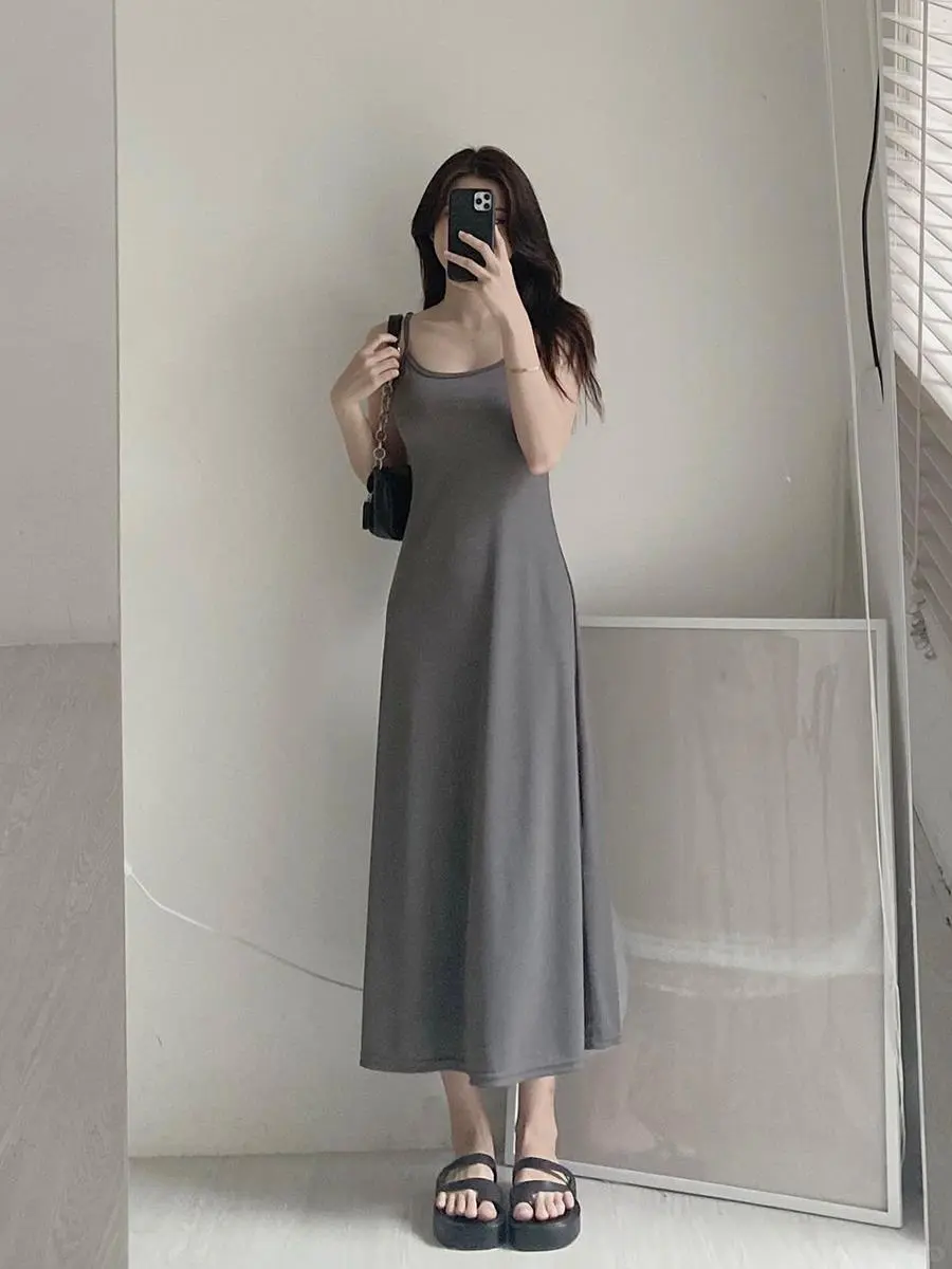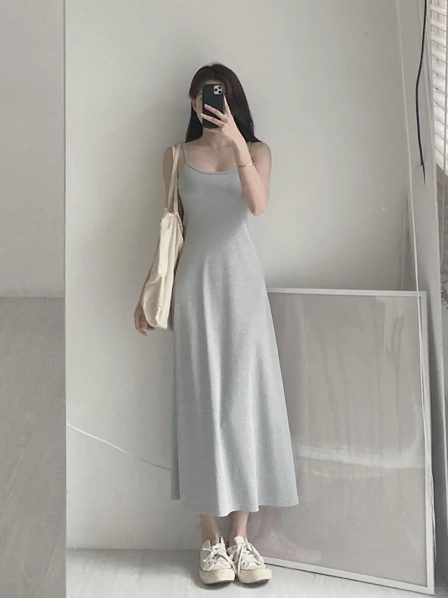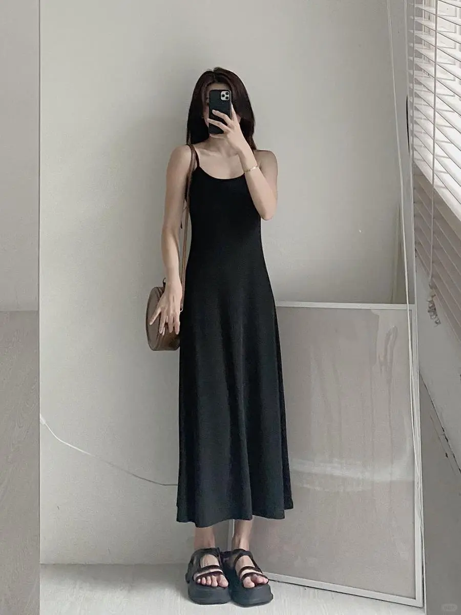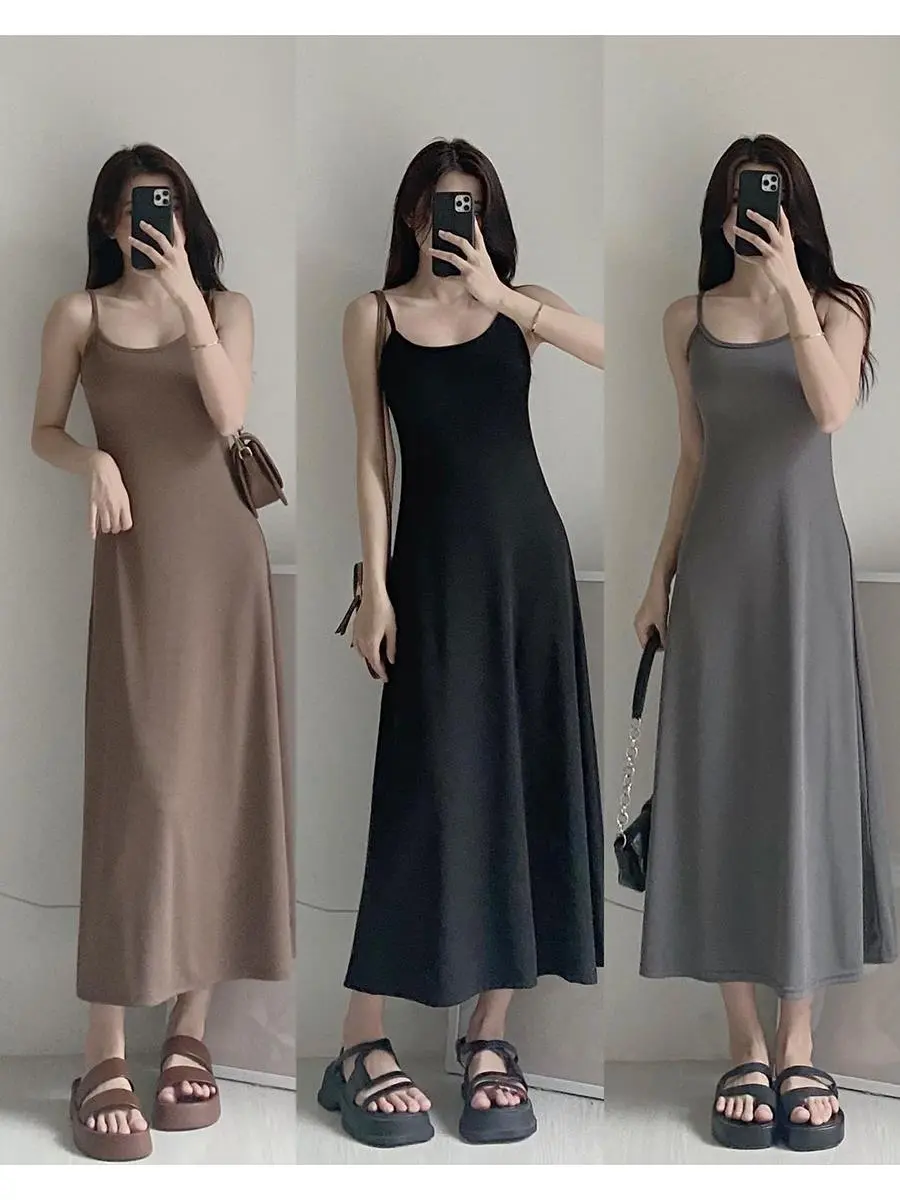 法式显瘦包臀长裙新款性感辣妹吊带外穿连衣