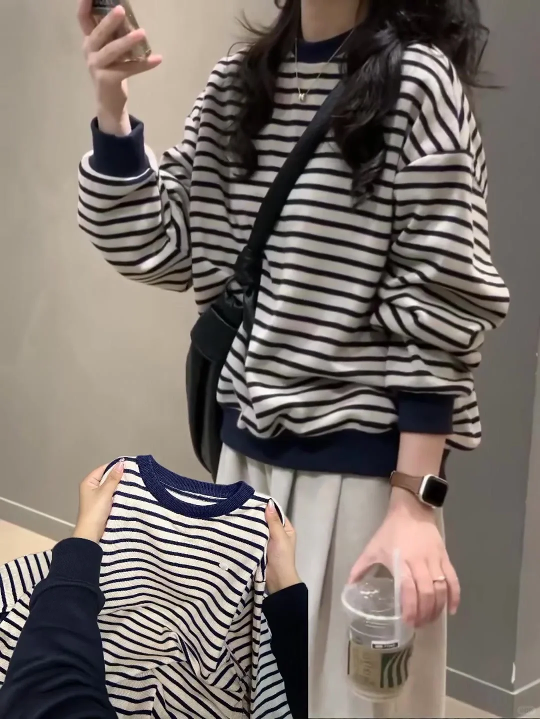 啊啊啊快去买!从去年卖到今年的款式!客服说库存就剩200+了\n条纹撞色经典不过时!过几年拿出来穿都很好看!\n这件我从秋天穿到春天 配过卫裤/鲨鱼裤/半裙/甚至瑜伽裤!超级百搭!上身自带氛围感\n实物质感巨好!现在到手只要30+💰还送运费险!!我和闺蜜直接团购了8件... #条纹控 #早秋卫衣 #条纹卫衣 #慵懒感穿搭 #慵懒风 #显白显瘦 #显白穿搭 #卫衣 #卫衣分享 #卫衣穿搭 #秋天是卫衣的主场 #舒适穿搭 #韩系穿搭 #我的上班通勤穿搭 #我的ootd #浅浅的期待一下秋冬 #秋日穿搭指南 #一周穿搭不重样 #职场通勤穿搭 #穿搭灵感风向标 #松弛感穿搭 #OOTD穿搭分享 #早秋出门这么穿 #不露腿穿搭 #办公室穿搭 #初秋氛围感穿搭 #职场打工人穿搭 #秋季穿搭女 #打工人一周穿搭