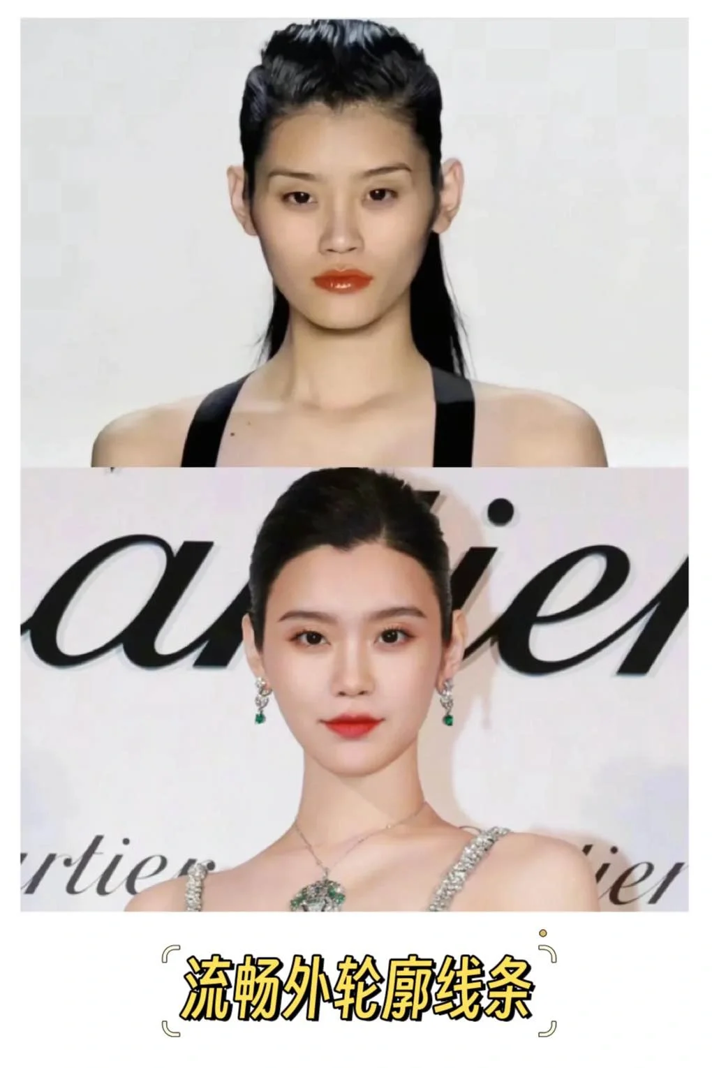 内娱乐中有很多明星都是菱形脸,但菱形脸的你却显老显凶,女明星们都是顶级神颜呢?这是为什么呢?原因有以下3点。\n1. 外轮廓流畅\n随着年龄的增长,胶原蛋白流失,面部线条就会变得不流畅,既显老又显刻薄。但女明星们的轮廓流畅自然,有些面颊处虽然略有起伏,但与下颌角衔接自然。\n2. 头包脸\n菱形脸女明星虽然颧弓略高,但是没有超过颅gu宽度,依然有头包脸的效果,这样显得脸更小,更上镜。\n3. 面中平整度高\n菱形脸+面中下垂,沟沟坎坎,简直灾难。女明星们皮肉贴骨,面中紧致,就会显得年轻很多。\n其实这种廓面菱形脸是最容易出大美女的,像张曼玉、舒淇、倪妮、小宋佳都是气质大美女类型,只要掌握好方法,你也能颜值飞升!\n#新年变美 #菱形脸 #廓面脸 #张曼玉 #倪妮 #奚梦瑶 #舒淇 #美商