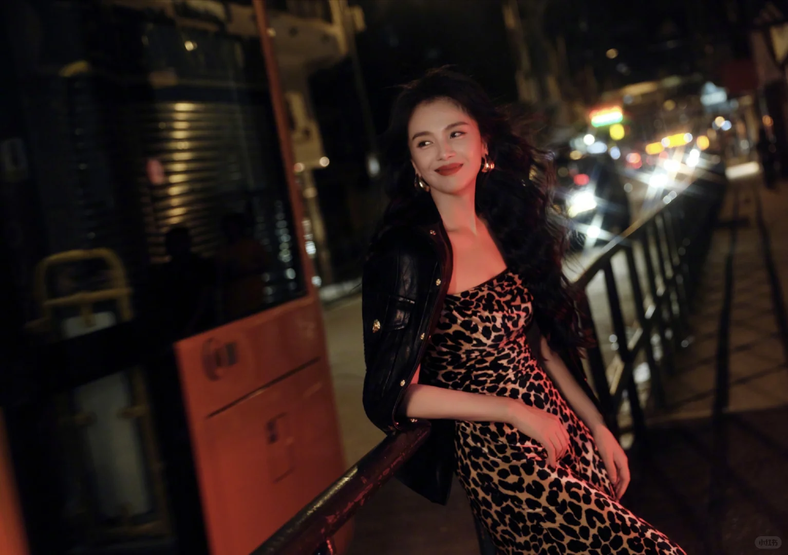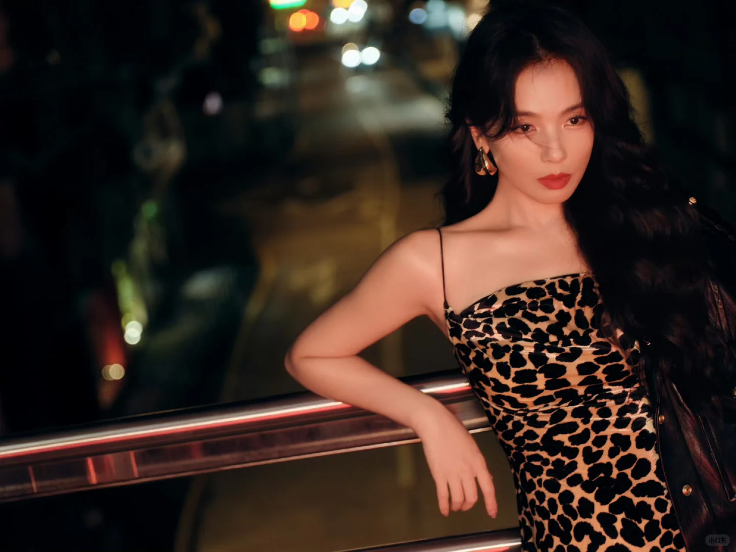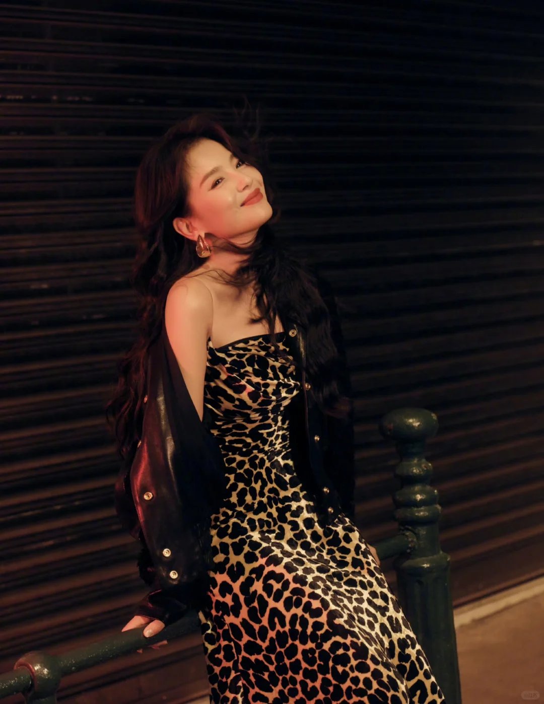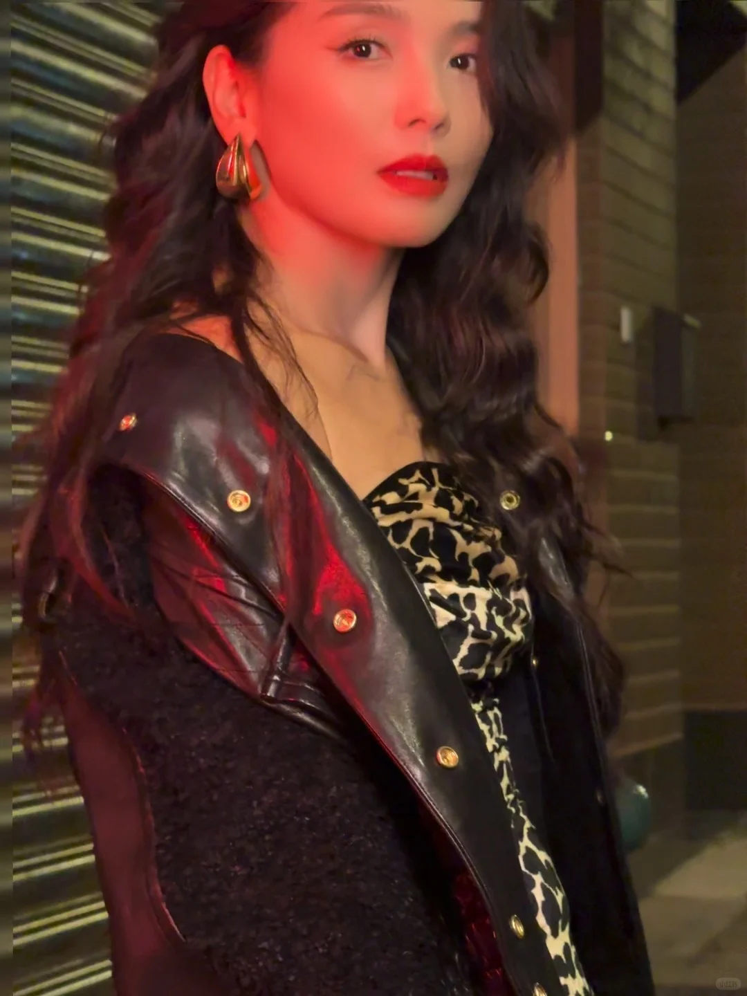 刘涛 豹纹吊带裙复古大波浪