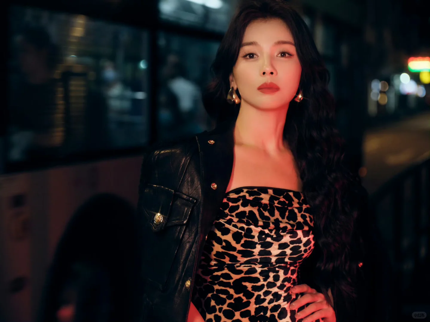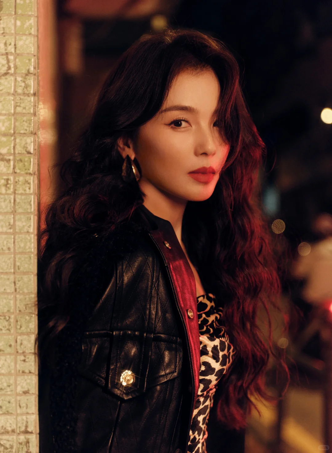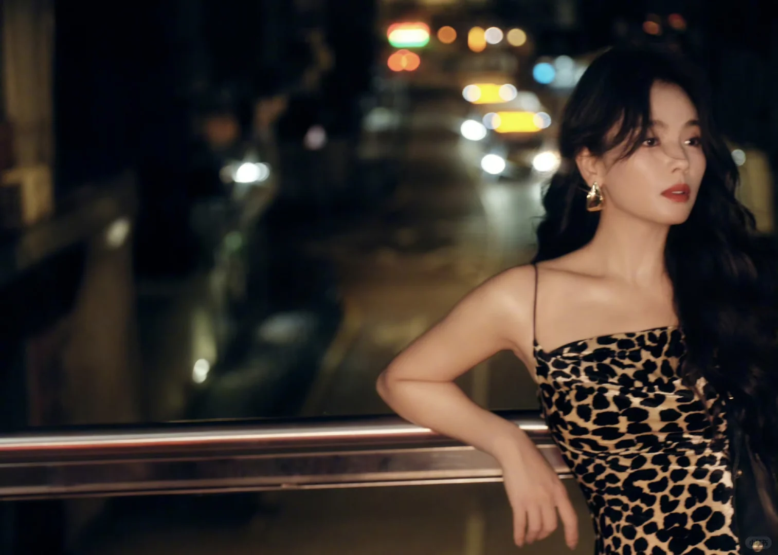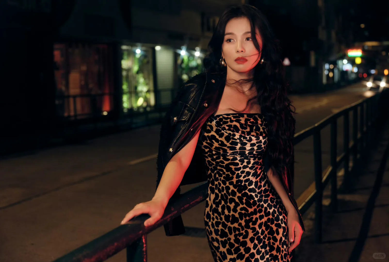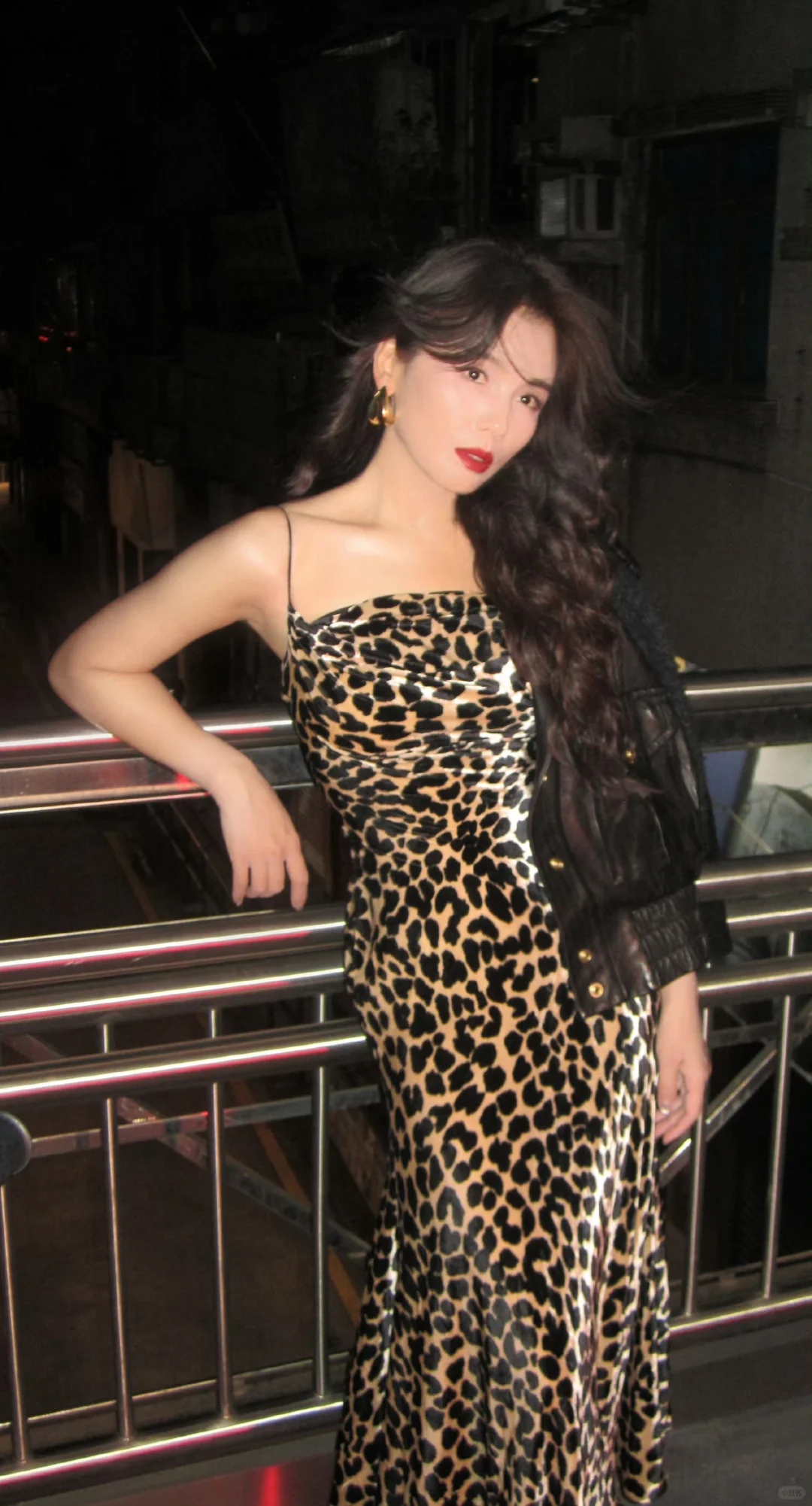 刘涛 豹纹吊带裙复古大波浪