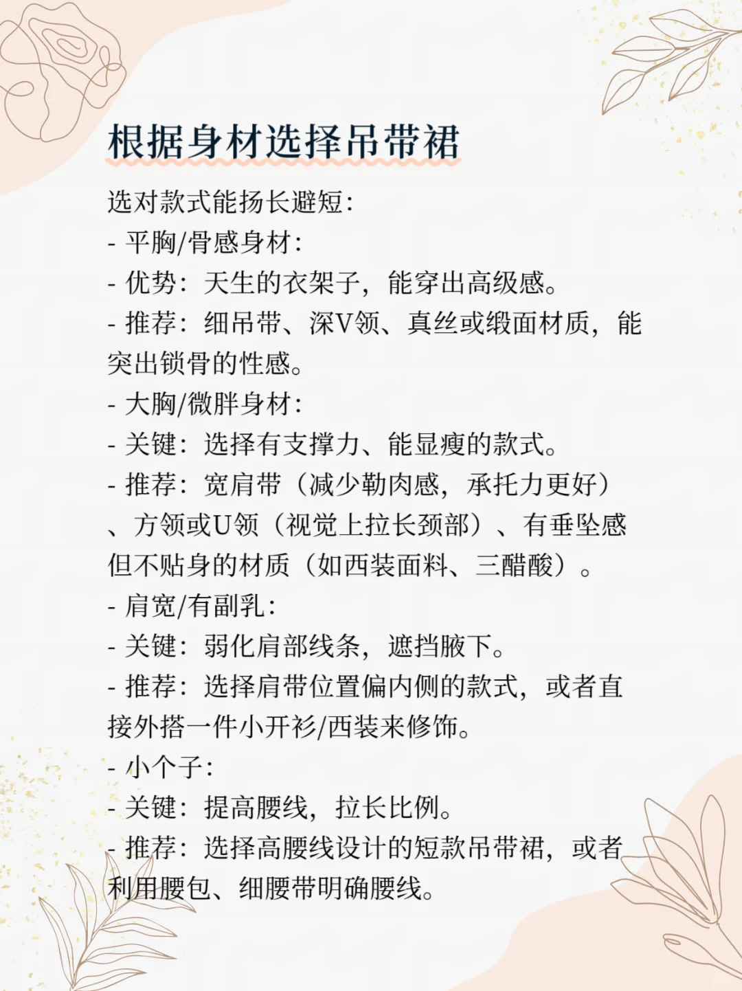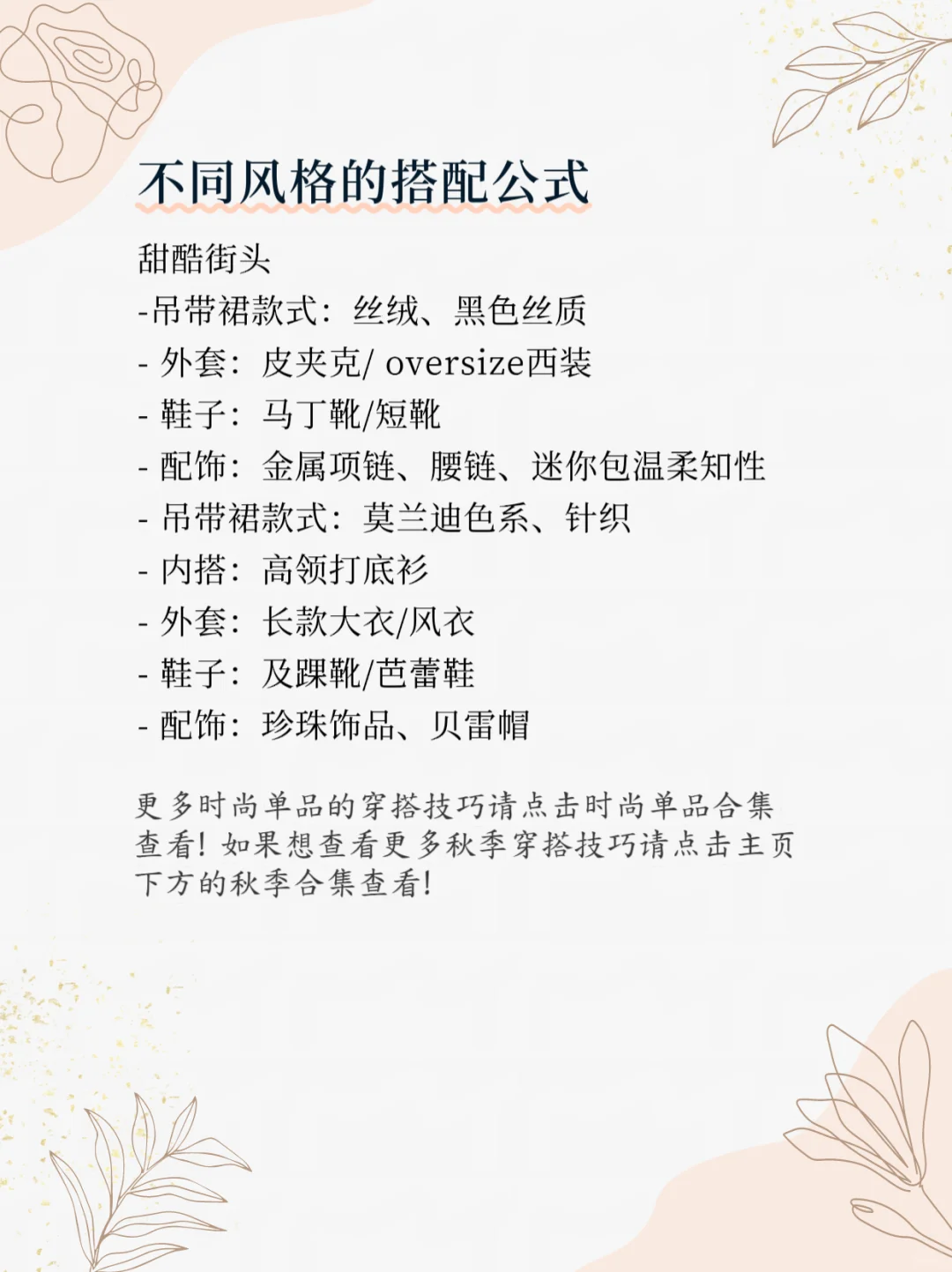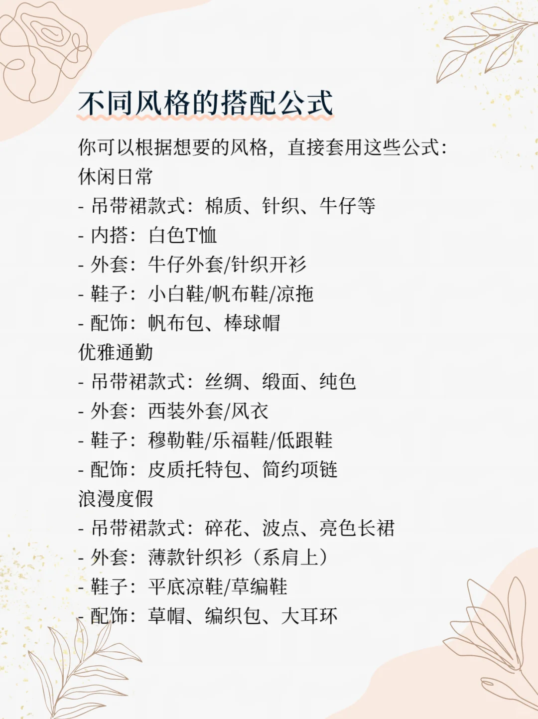 吊带裙是一件非常能展现女性魅力的单品,它可性感、可慵懒、可优雅,也能穿出休闲感。想要驾驭好它,关键在于搭配和场合的平衡。\n这里为你准备了一份超全的吊带裙穿搭指南,从风格到细节,一网打尽。\n我是云淡风轻,专注研究穿衣搭配,如果你喜欢我的内容,请给我点赞收藏加关注,你的支持是我努力的动力。不想错过更多时尚的穿搭技巧和干货请关注我!\n#吊带裙 #吊带裙穿搭 #吊带裙推荐 #吊带裙叠穿 #吊带裙搭配 #吊带裙外搭 #吊带裙里面穿什么内衣 #吊带裙内搭 #吊带裙秋季穿搭 #关注我每天分享穿搭技巧