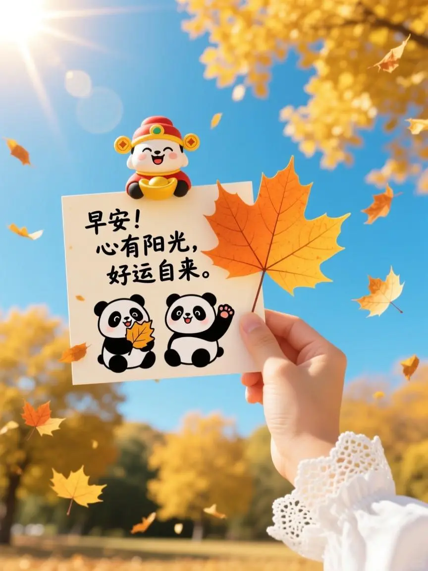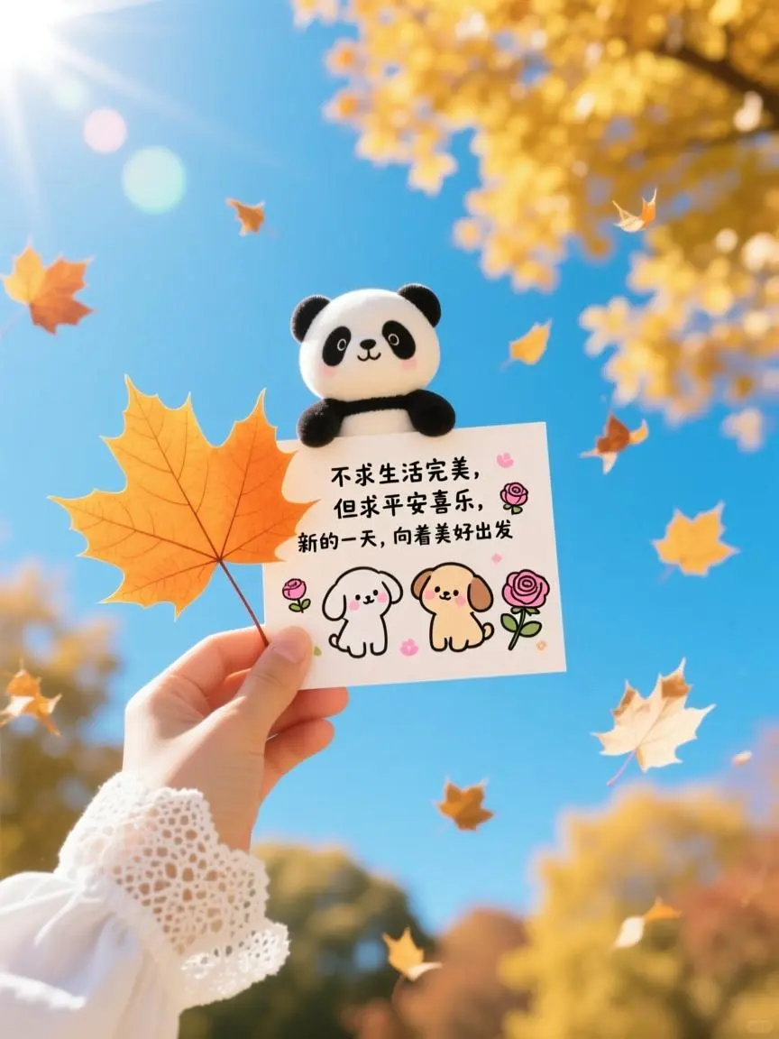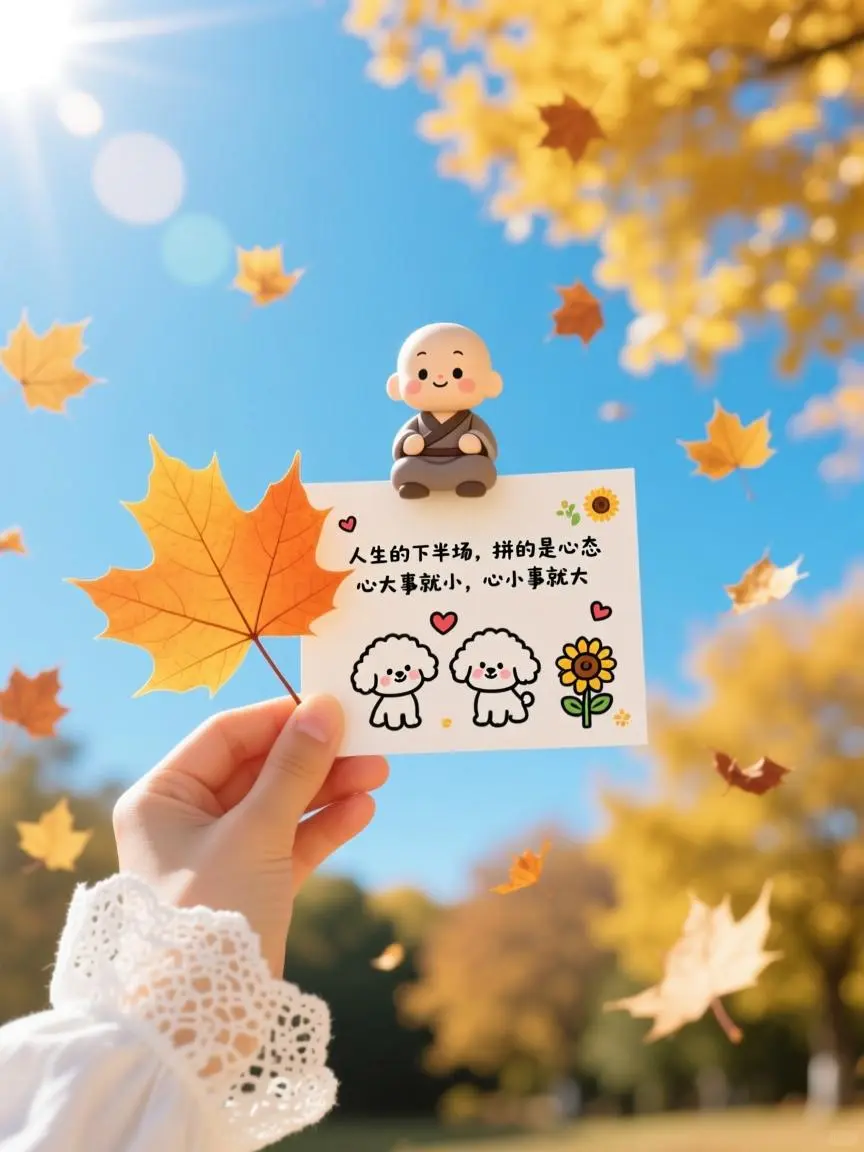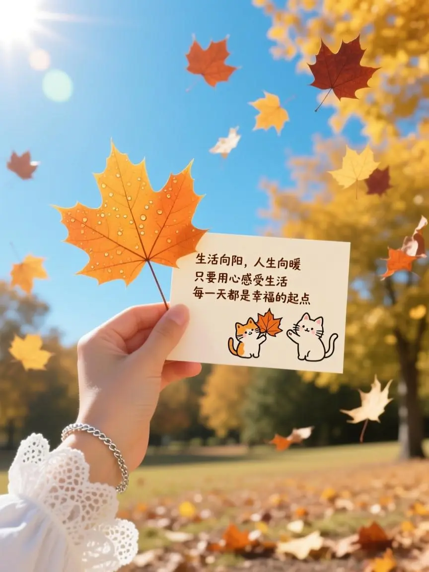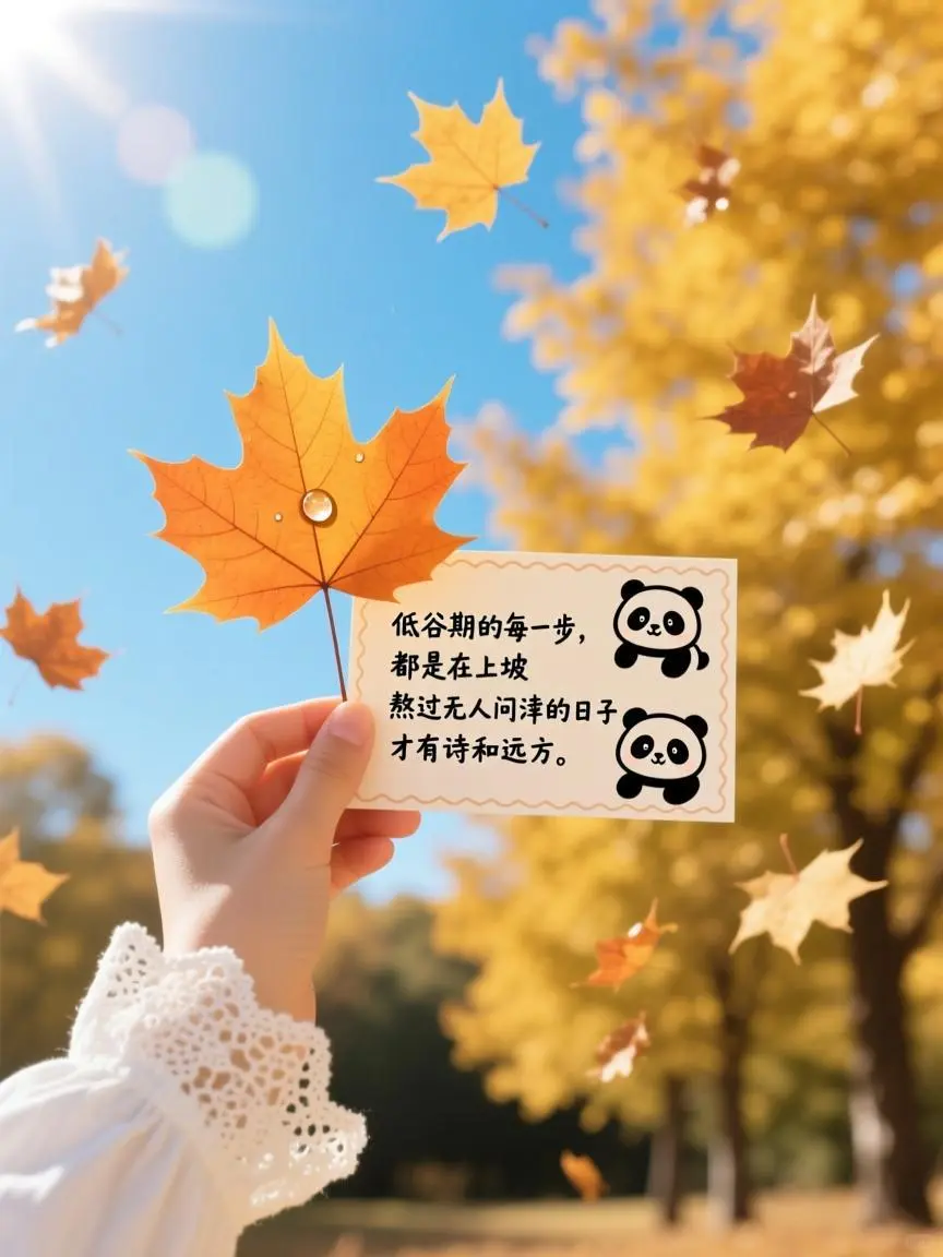 🌞早安!每一天都是独一无二的限量版,忙中有序是能力,闲中有乐是心态。人生如棋,落子就别回头,认真走好每一步,自有诗和远方在前方等你。\n \n🍀 新的一天开始啦!生活不用求完美,平安喜乐就很好。用心感受每一刻,你会发现,向阳而行的日子里,每一天都是幸福的新起点。\n \n🌟早安!人生拼到最后,拼的是心态。心大了,困难就小了;心暖了,前路就亮了。不求生活处处完美,但求带着勇气向前,新的一天,为更好的自己出发!\n \n💫早安!人生下半场,别和小事较真。把心放宽,那些纠结的事会慢慢变小;把注意力放在简单的快乐上,平淡的日常也会闪着光。今天也要好好爱自己~\n \n🌈 新的一天开始了!生活向阳,人生才能向暖。哪怕现在遇到阻碍,也要相信低谷是向上的起点,认真做好每件事,熬过艰难时刻,就能遇见更好的自己\n \n💖 人生如棋,落子无悔。低谷时的每一步,都是向上的阶梯。熬过无人问津的时光,才能走向诗和远方。\n \n✨愿你我心有光芒,把平凡日子过成幸福的起点。\n \n📣声明:本笔记的图片由AI辅助生成,仅供娱乐,无任何引导及商业行为。转载、搬运或商用请务必经“AI美学设计”授权,感谢您对原创内容的尊重与支持!\n \n#我倒觉得秋天比春天还好看 #治愈系风景 #壁纸 #秋天 #治愈 #秋天来了 #枫叶 #早安 早安文案愿所有美好如期而至 ai绘画 #这个秋天一起和落叶拍个照 #早安美好的一天