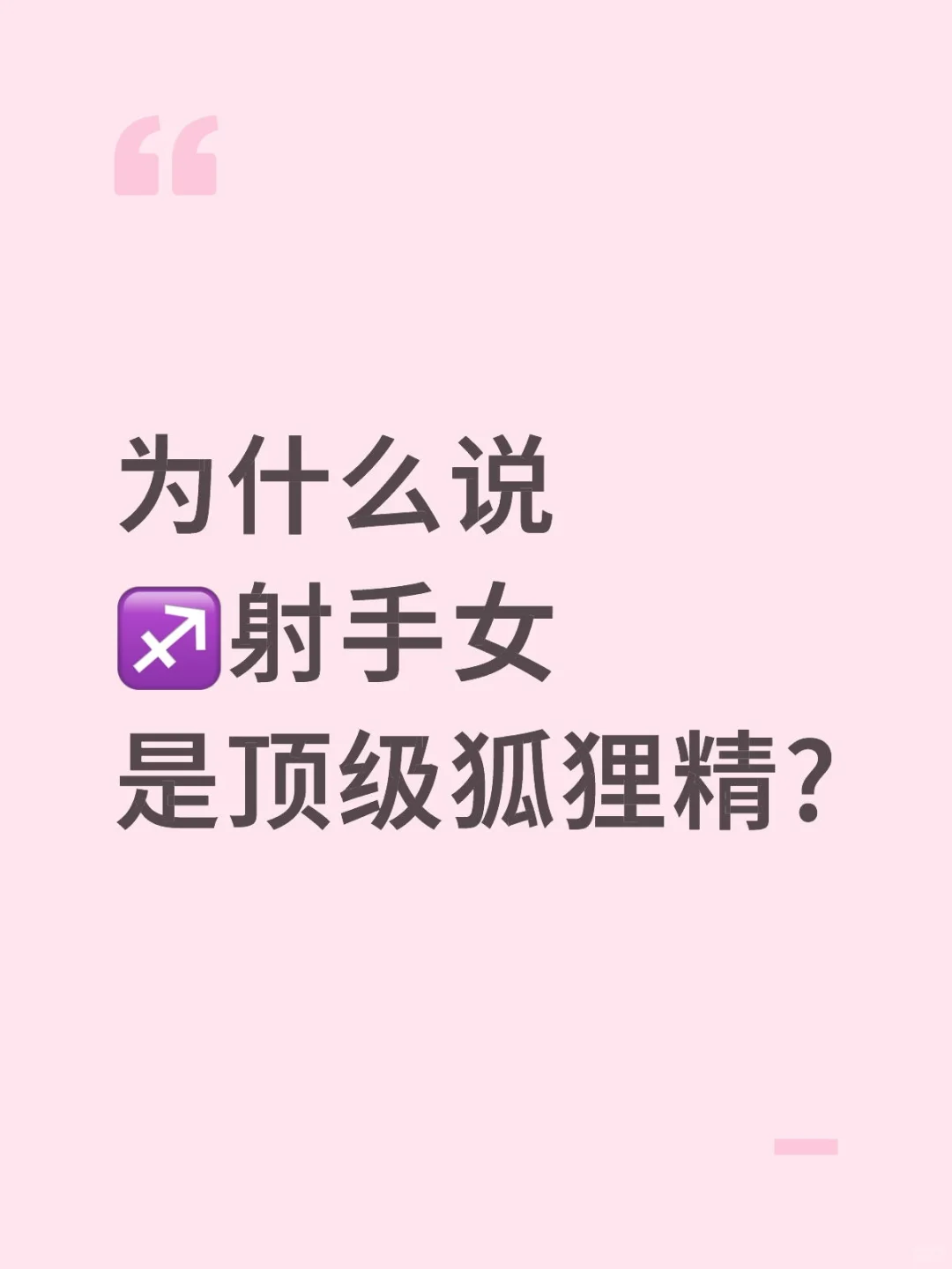 撩人于无形的本事堪称星座界天花板🌪️\n❶ 「不主动却自带引力场」的高级感\n射手女从不会上赶着讨好谁,但只要往那一站就闪闪发光。她们爱自由、有主见,聊起天来既能接住梗又有独特见解,男生反而会忍不住主动靠近。这种「做好自己就有人爱」的松弛感,比刻意撩拨更戳人。\n❷ 「情商拉满」的情绪价值大师\n天生能说会道的射手女,最懂异性的细微心思。别人帮个小忙,她们的感谢真诚又自然,眼神明亮得像有星光,这哪是暗送秋波,分明是高段位的共情能力。跟她们相处从不会尴尬,再沉闷的人都能被带动得敞开心扉。\n❸ 「外松内紧」的反差杀\n表面看着大大咧咧什么都不在乎,实则心里比谁都有数。你以为是自己在掌控节奏,其实早就被她们纳入视线范围。这种「看似洒脱却暗藏通透」的神秘感,让人越琢磨越着迷,根本移不开眼。\n❹ 「收放自如」的边界感\n接受别人的好但不依赖,享受关注却不迷失自我。她们的热情是对世界的好奇,不是套路你的信号;愿意靠近是因为灵魂同频,不是贪图陪伴。这种清醒又真诚的态度,让男生心甘情愿付出也不后悔。\n射手女的「狐系魅力」,从来不是刻意扮媚,而是活得舒展又通透的自然吸引力💕\n#射手座 #射手女 #星座性格 #狐狸精星座 #星座解析#星座 #十二星座 #