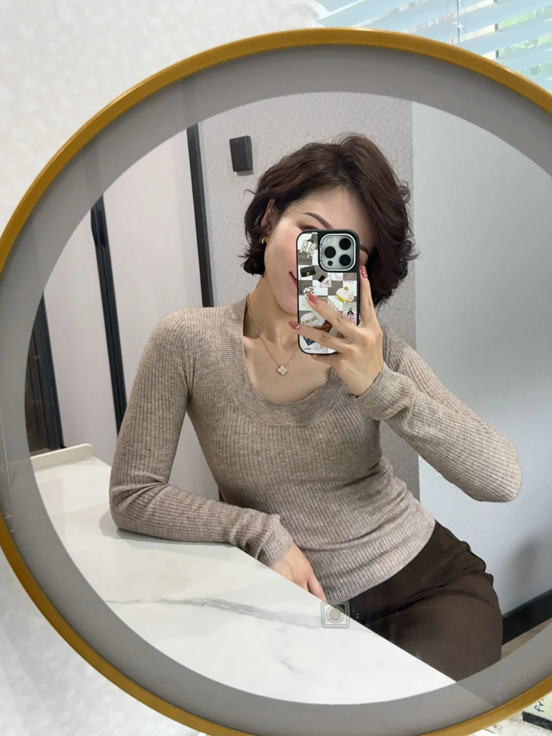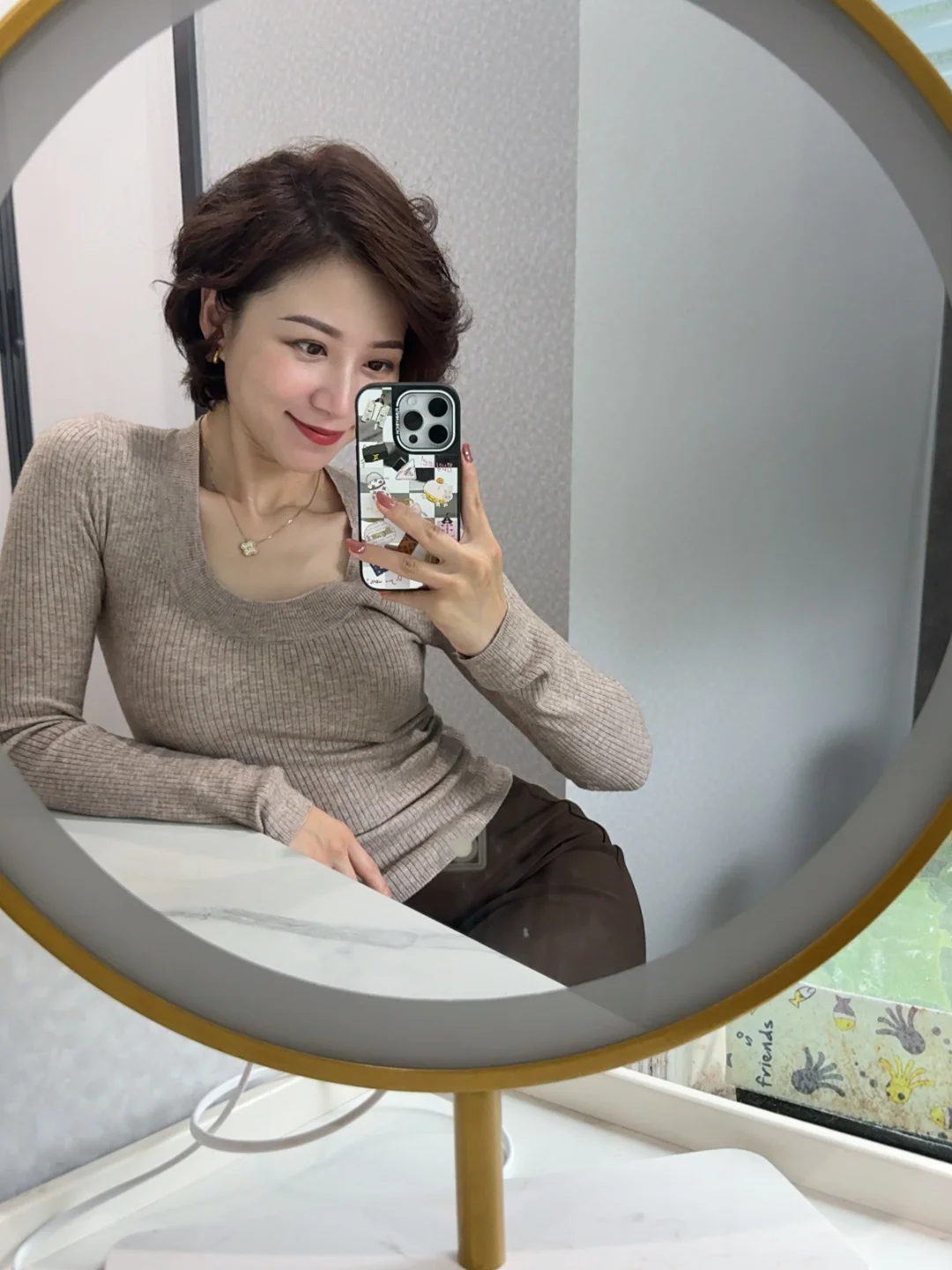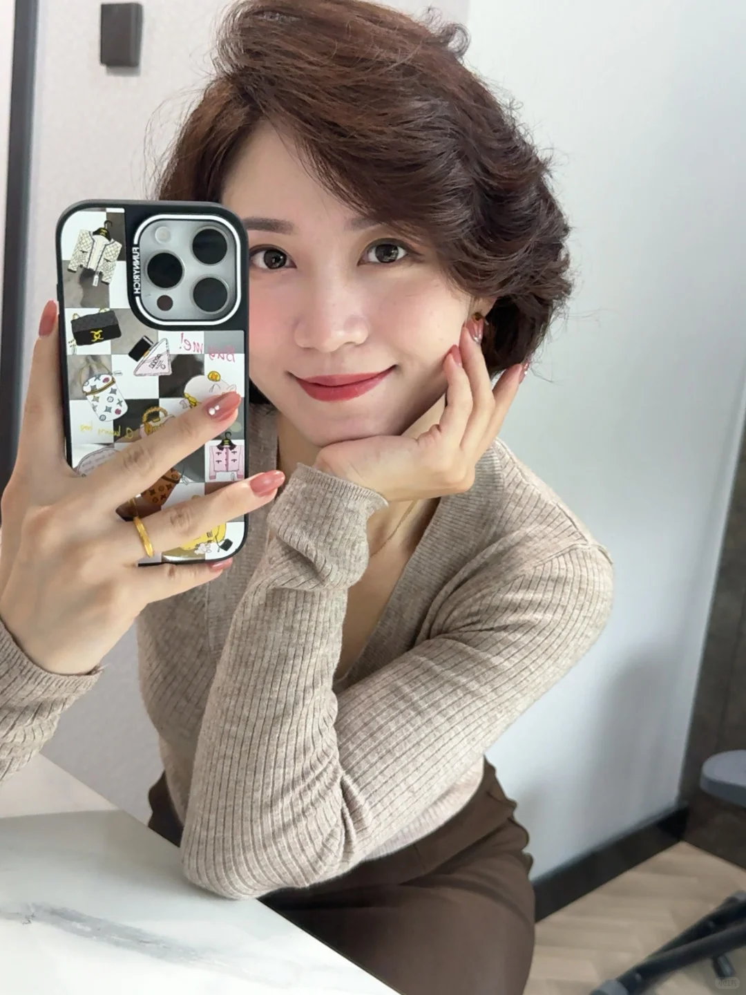 上一篇的发型被宝贝们夸爆了!\n我也越来越爱这种短发➕卷发的造型,\n自带氛围感的发型,让我尽情释放30➕女人的味道。\n柔和 坚定 明媚 前途明朗的三十多岁~\n姐妹们如果喜欢,我就出卷发教程啦?~\n