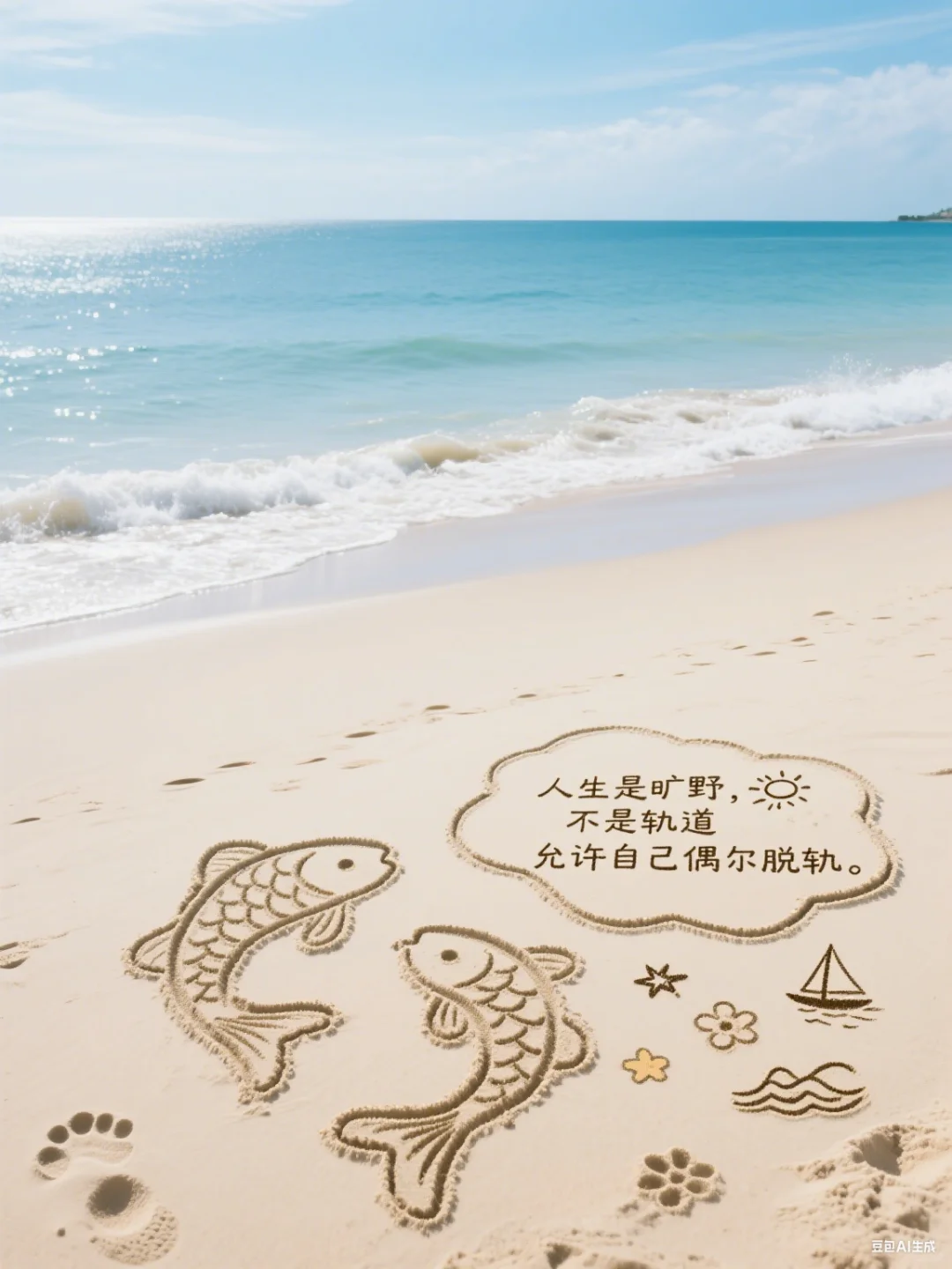 🌞 把每个清晨当作重启键,带着清零的勇气轻装出发,美好或许会迟到,但永远不会缺席。\n \n💫 不必困在既定的轨道里焦虑,偶尔偏离航线,说不定能撞见更惊喜的风景 —— 人生本就是无拘无束的旷野。\n \n🌼 今天的阳光、微风和相遇都是独家限定,认真对待每一分每一秒,就是给生活最好的答案。\n \n🌿 别着急要答案,脚下的路会慢慢告诉你方向;别困住自己,风会带着自由吹向每一个勇敢前行的人。\n \n🍃 去攀一次山,听风穿过林间的回响;去看一片海,感受浪花拍岸的力量。在山川湖海间,遇见最本真的自己。\n \n🌱 风华正茂的年纪,不必讨好世界,先好好拥抱自己。你值得所有温柔与偏爱。\n \n💕 把心里的阴霾扫开,让阳光住进来。平凡的日子里,一餐一饭、一草一木,都是细微却闪光的美好。\n \n✨ 不必困在轨道里奔跑,人生是辽阔旷野,允许自己走走停停,也允许风带着你偏离一程。\n \n💗 每一天,都是崭新的起点,向着美好,轻装出发。\n \n📣声明:本笔记的创作灵感与构思均为原创,图片由AI辅助生成,仅供娱乐,无任何引导及商业行为。转载、搬运或商用请务必经“AI美学设计”授权,感谢您对原创内容的尊重与支持!\n \n#治愈系风景 #壁纸 #所有美好都如期而至 #沙滩代写 #ai绘画 #豆包ai #AI #手机壁纸 #大海 #正能量文案 治愈文案 手机壁纸 愿一切美好如期而至 每一天都是新的开始