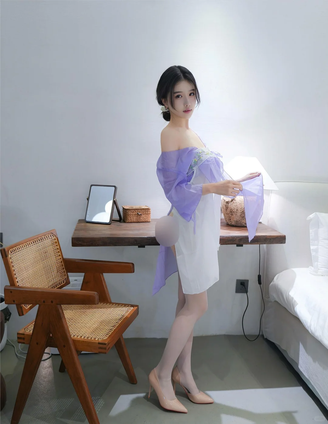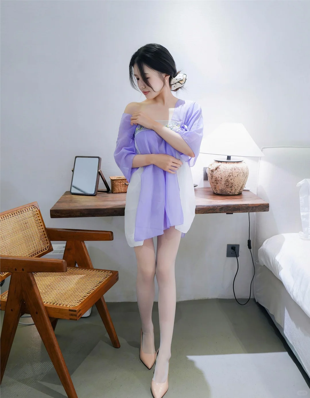 美女壁纸:紫色薄纱白嫩娇羞长腿高跟少妇