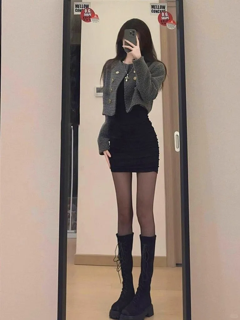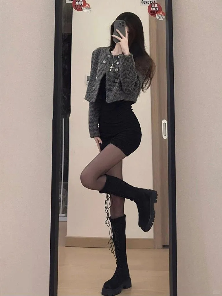 甜酷炸街公式!短外套+黑裙锁死这波高级感