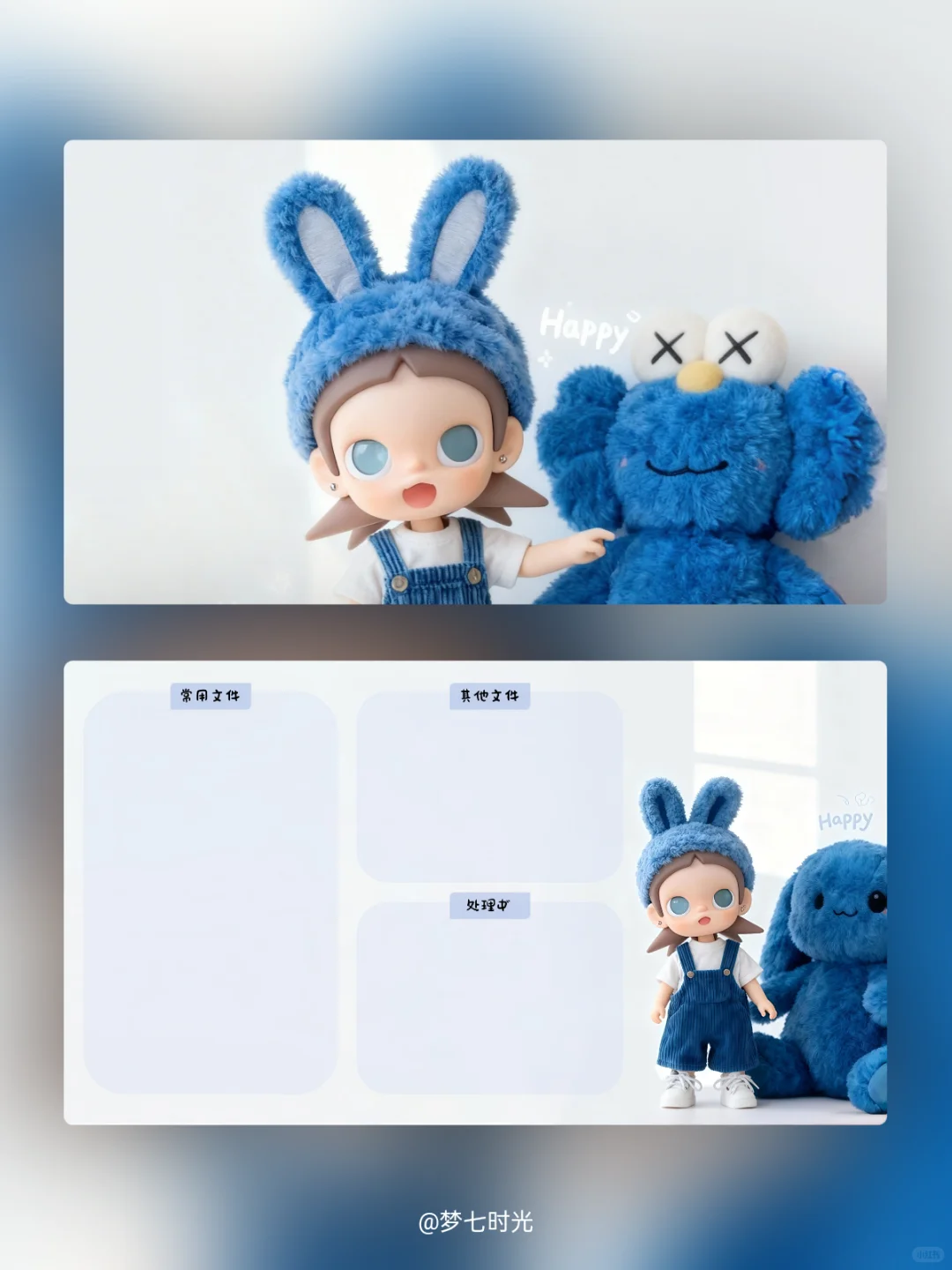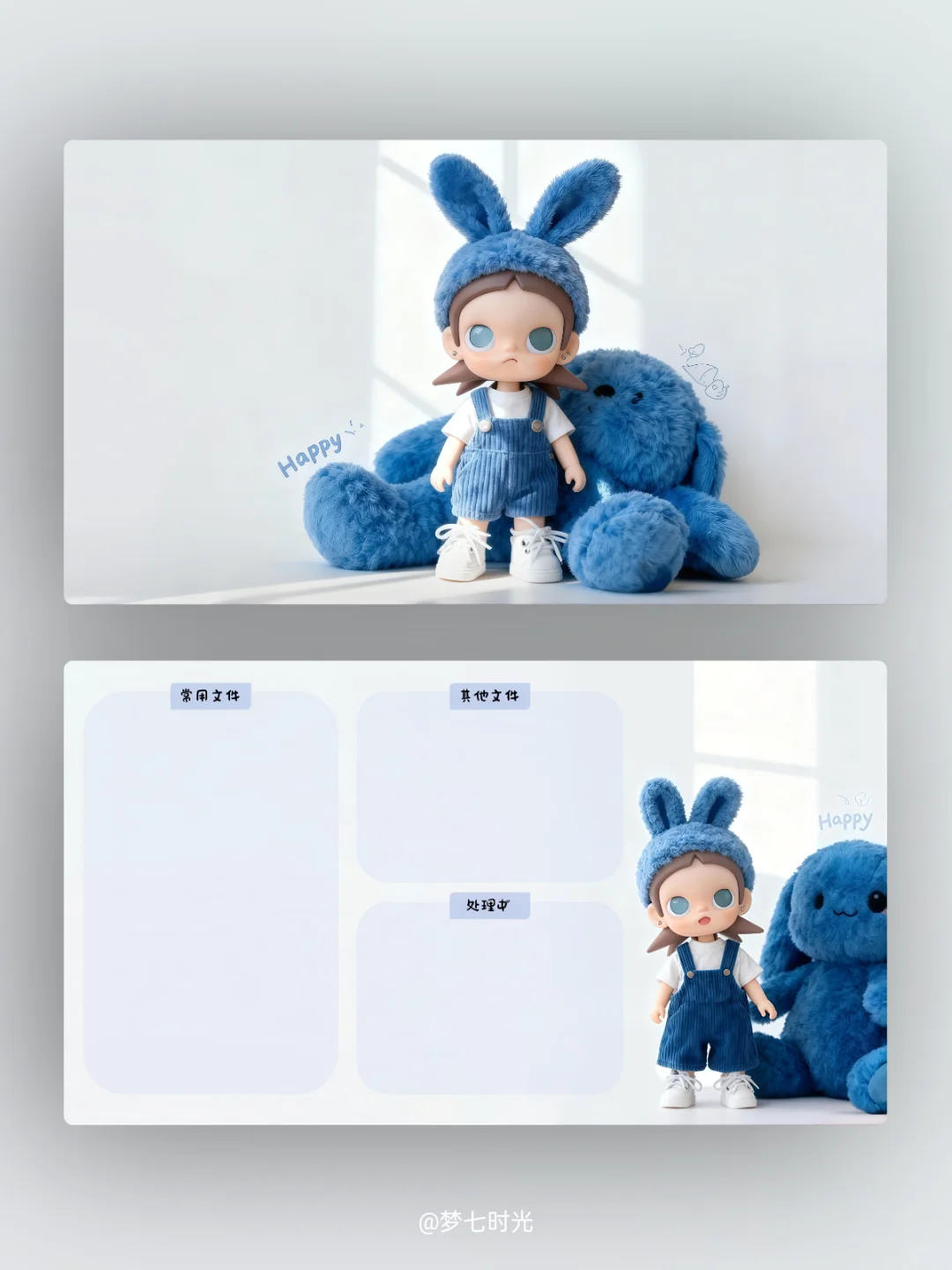 蓝色兔纸电脑壁纸来啦~\n-\n壁纸数量:锁屏2张(站立全景款+大头款)\n桌面2张(原图+分区)\n壁纸分享:仅分享锁屏壁纸(站立全景款)💌\n-\n☀️禁止商用|二传|转载\n