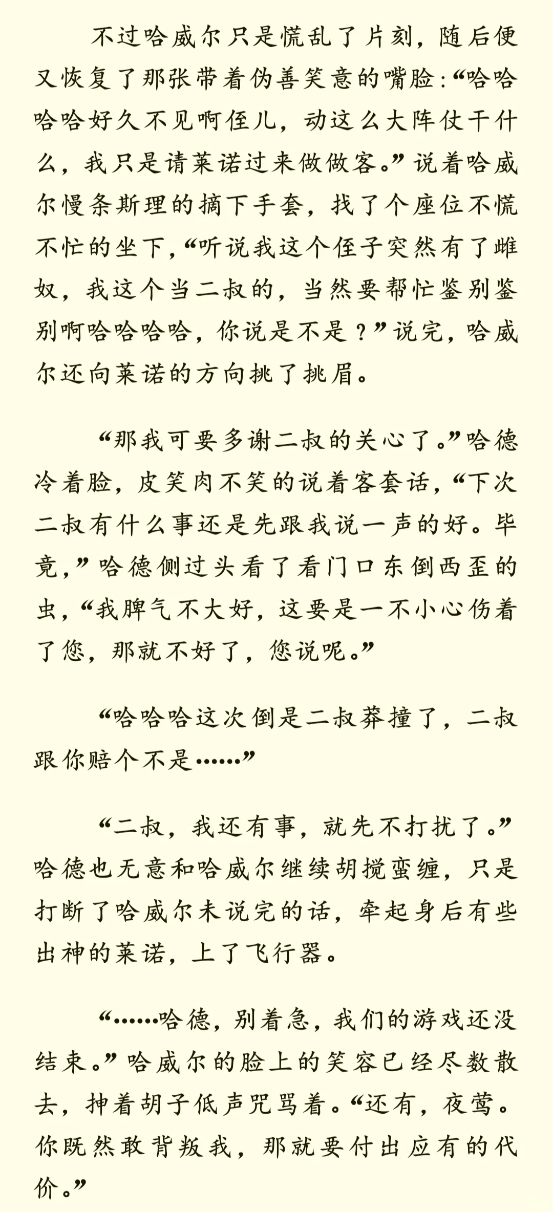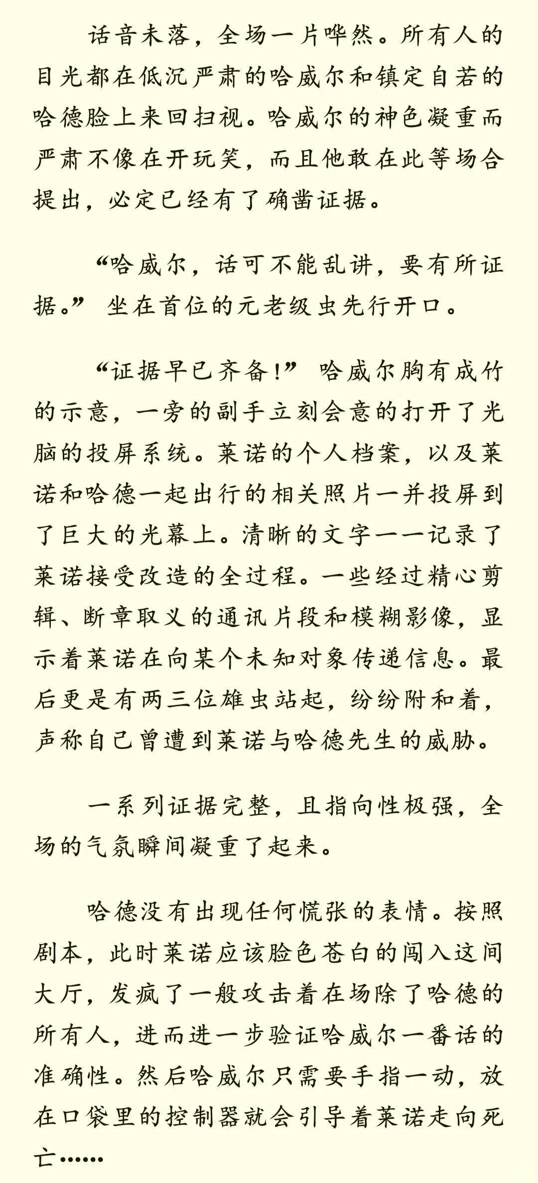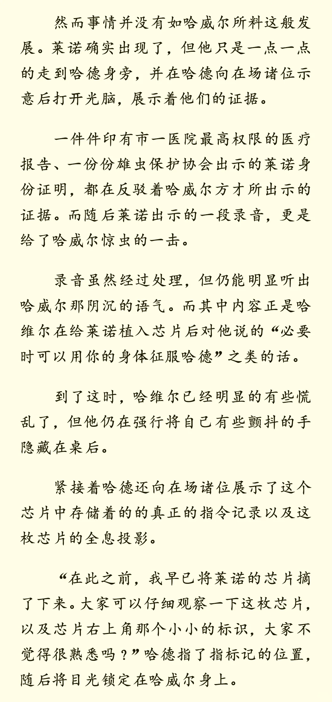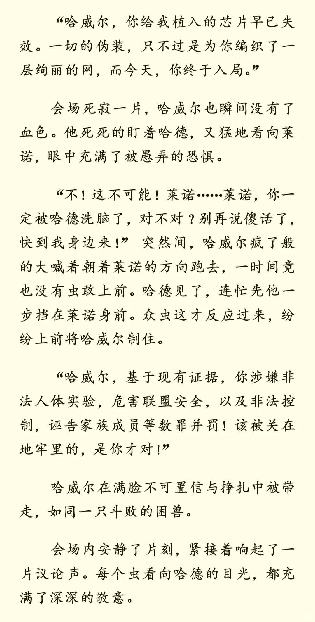 当受尽折磨的雌虫被强制匹配到一个讨厌雌性的雄虫家中——后记 哈威尔篇\n \n许久不见!拖更了几天然后终于爬起来更新了\n这次更新的是有关哈威尔的内容,也算是对于这篇短文的收尾,有机会后面会继续更新一下哈德和莱诺的甜甜小日常?\n \n这篇其实也相当于一个小小的补充?所以没打算写的很详细,许多有关哈德与哈威尔的斗智斗勇都略过了(目移)所以可能又被我写成流水账了嚯哈哈哈(仰天狂笑(不是)\n \nps:其实一开始还有蛮多想写的,比如哈威尔的老巢其实就是他休闲玩弄雌虫的场所,再比如哈威尔的新芯片“织梦者”,其实可以在日常散发有些迷幻的香气,尤其是在某些剧烈运动的时候()这样他就能彻底控制住哈德。但是没找着机会写出来,就放在这吧(*´I`*) 以及,小情侣什么时候才能深入交流一下啊(……碎碎念)\n \n以上,仍旧希望您看得开心~\n \n————\n二编:补药和谐我啊QAQ\n \n#虫族 #bl #脑洞 #虫族文