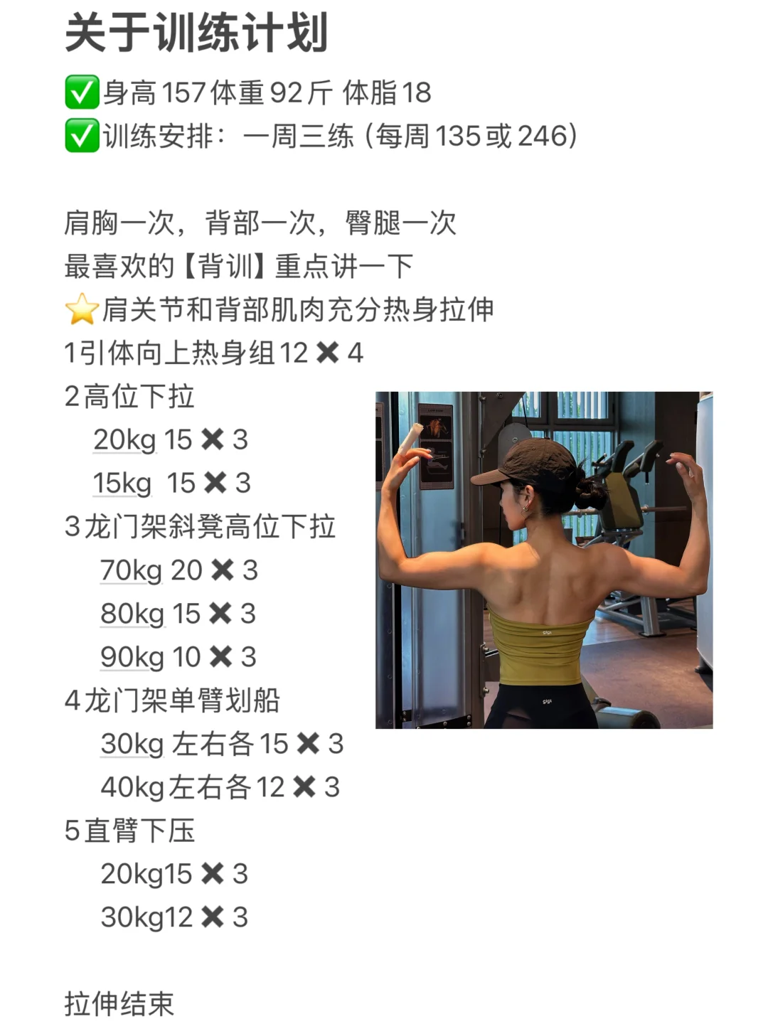 作为一个30➕宝妈,自从开始健身后,也是从之前臃肿的宝妈逆袭到现在的薄肌姐姐,胳膊腹部皮肉倒是越来越紧,体力也明显比20岁的时候更好!\n \n首先为啥会健身:\n女人到了下半场,拼的就是肌肉。\n随着年龄的增长,特别过了30岁之后,人体内的肌肉量会开始以每年1%~2%的速率减少,会导致力量减弱、皮松、垮脸、衰老,而且还会影响代卸,这是中年发福的主要原因。\n \n所以作为一个过来人的经验:\n建议女生们健身增肌可以早点开始,提前储存肌肉,能让我们拥有一个相较同龄人来说更好的体态与状态。\n❓那怎么合理安排训练,怎么科学安排饮食呢?今天和大家分享一下我的经验\n \n✅我每周会进行三次力量训练,分别是臀腿,肩胸,背部(具体见图)\n力量训练是刺激肌肉生长、➕肌肉量的有效方法,30+的女生不仅储肌能力低于男生,更低于20+的女生,所以每周大概2-3次力量训练是合理的强度。\n不要因为想瘦只做有氧运动啦,女人就是要有力量💪,力量训练更能让你身材紧致\n \n✅力量训练就是要搭配合理的饮食\n我一般就是家常菜,但会做到少油少盐,优选鱼虾牛肉鸡蛋来做菜,猪肉的话也是会选择瘦肉。\n不过必须保证蛋白质的摄入,充足的蛋白质才能让肌肉得到充分恢复和生长,我一般训练日吃每kg体重的1.5倍蛋白质,非训练日吃1-1.2倍左右。\n人的肠胃功能也会随着年龄增长弱化,单靠饮食摄入蛋白质消化吸收不完全,蛋白质会打折扣,我还会额外增加蛋白粉\n \n🖤foyes分离乳清蛋白粉是我爱喝的一款,每次力量训练后来一勺,蜜桃味是我的最爱嘿嘿\n它是纯分离的蛋白粉,哥兰比亚高端分离原料添加量98%。每勺30g有27g左右的蛋白质,百克0.3g的脂肪,比食物真的方便很多,而且因为加了沛力肽这个成分,不用担心吸収不了的问题。并且0乳糖,乳糖不耐受人群也完全可以喝,对肠胃没什么负担\n🙋♀️增肌不是一朝一夕的事,坚持就是胜利💪!期待大家成功蜕变~\n#撸铁女孩 #抗衰 #30岁 #中女时代 #foyes分离乳清蛋白粉 #foyes #健身 #见人不如健身 #运动带给我的变化 #万物皆可淘