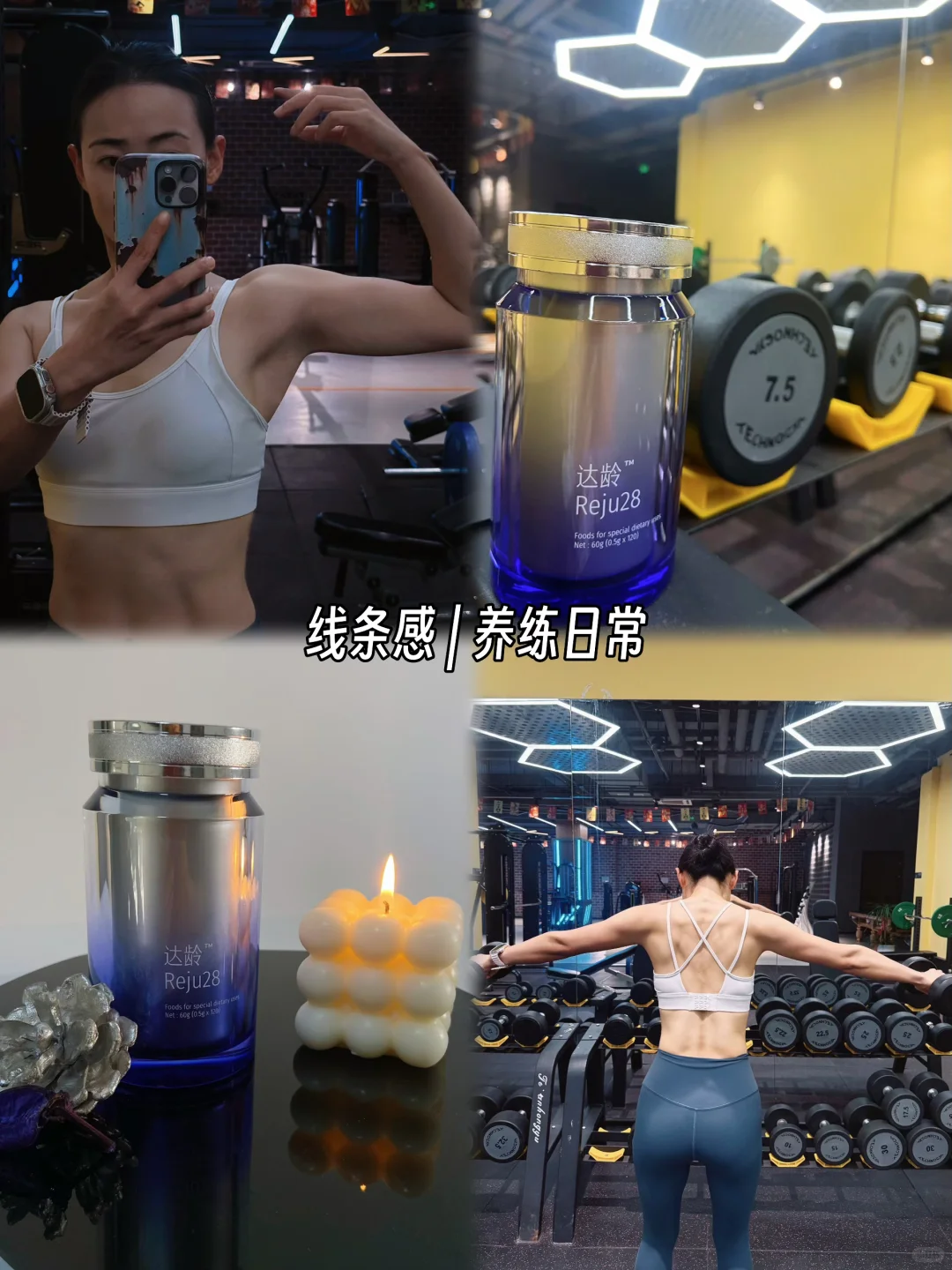 坚持每周4-5次力量训练、严格控糖,却还是没挡住30+的【衰老预警】——下颌线被松垮的皮肉盖住,练肩背的耐力没降,但练完总觉得累得缓不过来。。。\n \n以前总觉得“运动=天然抗老”,直到身体状态跟着熬夜和压力断崖式下滑才懂:健身练的是皮肉紧致,却补不了深层的胶原和气血。护肤品涂再多是“表面功夫”。我看闺蜜的教练40+了状态依旧很好,找她聊了聊,她让我试试达龄Reju28。👇🏻👇🏻👇🏻\n \n用了一个多月才找到突破口:它的内服真不普通,像给身体加了层「抗老buff」。独家专利的小分子成分可直接作用到深层,一边帮着赶走自由基——运动后身体氧化应激更明显,自由基少了,皮肤就不容易发黄暗沉;它还能降低表皮细胞的“出走率”,像给胶原网加了“加固剂”。[心心眼R][心心眼R]\n \n现在练完肩背照镜子,不止线条挺拔,脸蛋也跟着“支棱”起来:苹果肌有了嘭感,下颌线和肩颈线条连在一起更利落~\n \n女孩们想要好状态要重点关注内调外练哦,毕竟内服+健身的双buff,才是对抗岁月的高级玩法。\n#达龄#达龄Reju28#自律健身 #内源性抗老 #30➕抗老 #健身人的内服清单#抗衰老#内服抗衰#女性保养#健身