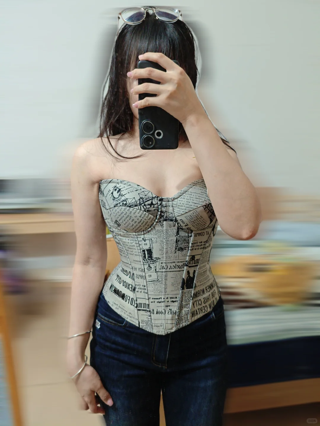 第一次尝试鱼骨胸衣,搭配牛仔绝了!