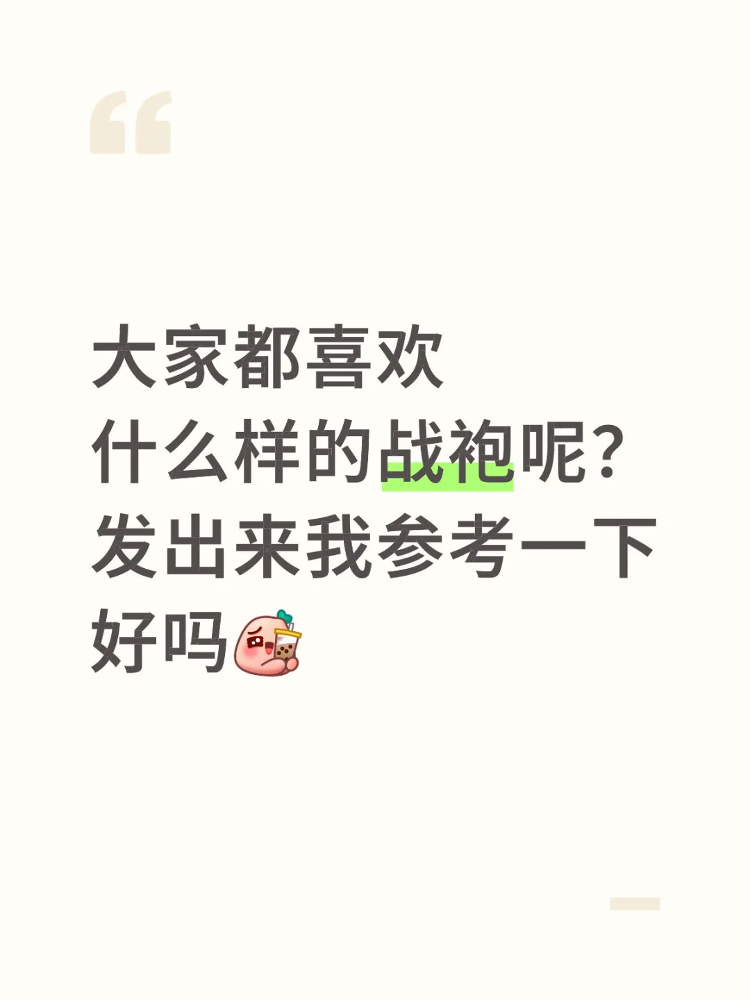 大家都喜欢什么样的战袍呢?发出来我参考一下好吗