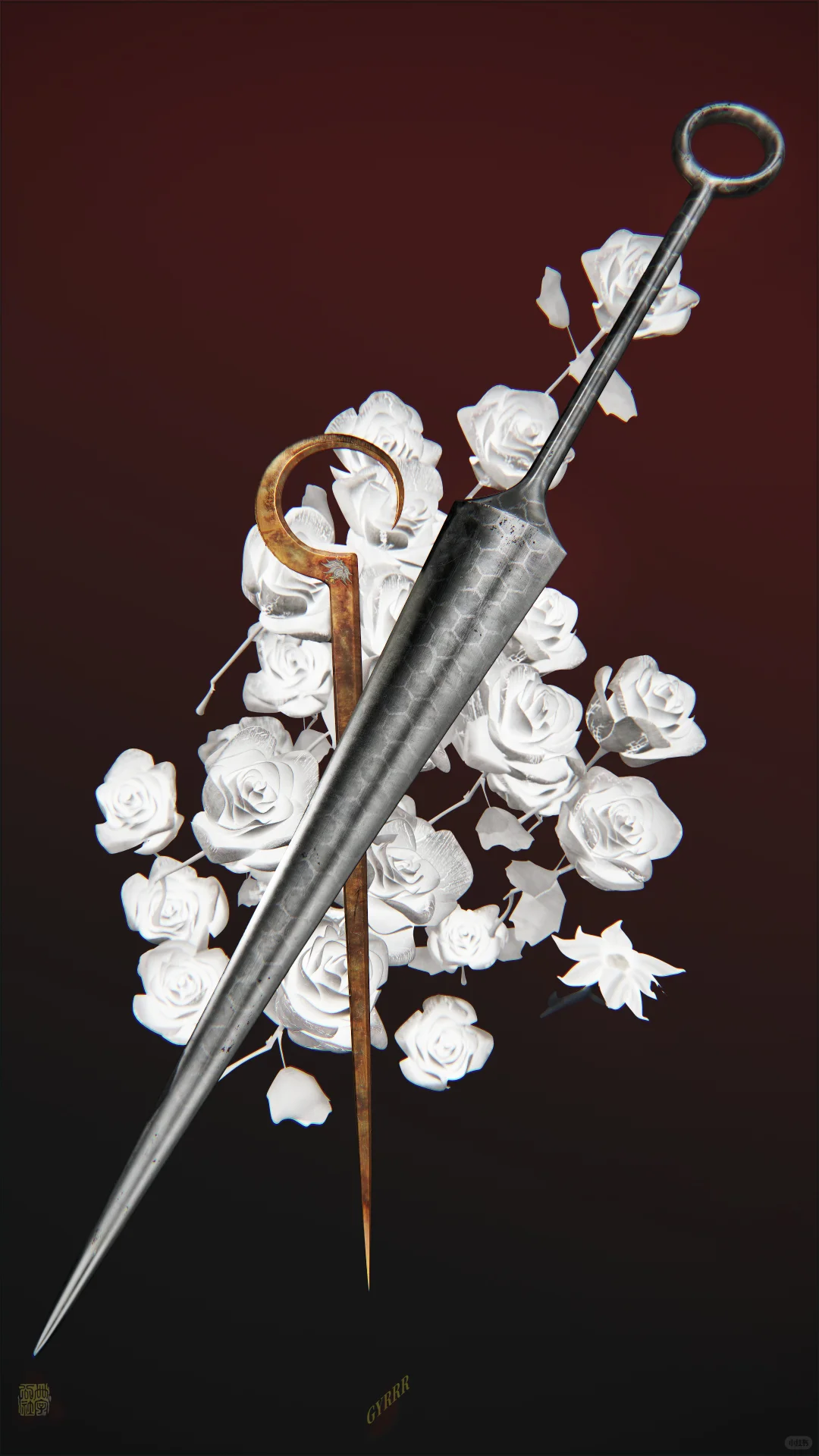 恭喜啊小蜘蛛,你终于刺痛了我....也知道了我是具可悲\n的空壳。\n \n我早察觉到了,孩子。你根本不是虫类,纯粹是丝线捏造的生命。\n \n生命?你还真是心善!这种虚弱、日渐腐朽的身躯....这算什么生命,就是具空壳罢了。\n \n你确实活着,苍白之子。我见过与你类似的存在.…...即便内里空无一物,你也是独一无二的生命。\n \n来自摇篮圣所的对话\n \n蕾丝的武器在三维化过程中也有私心,以错金银形式把大黄蜂的白花和蕾丝的玫瑰(蔷薇科大概?)嵌进去了\n \na站链接:\nhttps://www.artstation.com/artwork/L4d29v\n#蕾丝 #lace #空洞骑士 #丝之歌 #三维建模 #武器 #武器设计 #三维渲染 #pbr #次世代建模