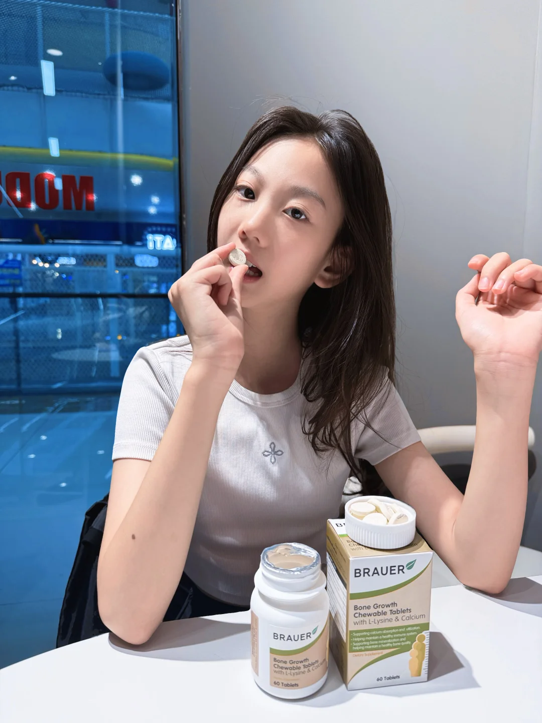 作为陪女儿走秀5年的妈妈,最懂小模特对体态和身形的高要求 —— 每次拍摄要长时间站姿定型,T 台走秀时更要保持腰背挺拔、步幅均匀,要是骨骼没力气、体态不够舒展,镜头里很容易显局促。\n查了很多资料,才知道小模特常保持固定姿势,骨骼对钙和赖氨酸的需求更高,对比多款选择了 Brauer 蓓澳儿赖氨酸成长钙片。\n选这款也是做过功课的:\n它每片含 150mg L - 赖氨酸盐,是左旋盐酸盐配方,比普通赖氨酸溶解度更高,孩子肠胃弱也能轻松吸收;还搭配了 100mg 钙、20mg 镁、2mg 锌,以及维 A、维 D3、维 K2 等 11 种成长因子 —— 这点非常太友好,不用再给孩子塞一堆瓶瓶罐罐,省心不少。\n0 蔗糖,酸甜水果味,吃完不用特意漱口,也不担心影响体重管理(毕竟小模特对身材要求高)。\nBrauer蓓澳儿是 1929 年创立的老品牌,有接近百年的历史,我也放心。\n当然要提醒下,营养补剂只是 “加分项”。现在女儿每天除了吃3片赖氨酸钙片,早餐会加鸡蛋和牛奶补充蛋白质,晚上 9 点半准时睡觉(不耽误生长激素分泌), ——练好基本功,营养也跟上,两者结合才能让孩子在台前更自信。\n#brauer #蓓澳儿赖氨酸成长钙片 #儿童钙片 #赖氨酸钙片 #美到我的心巴 #少儿模特 #长腿就在一瞬间