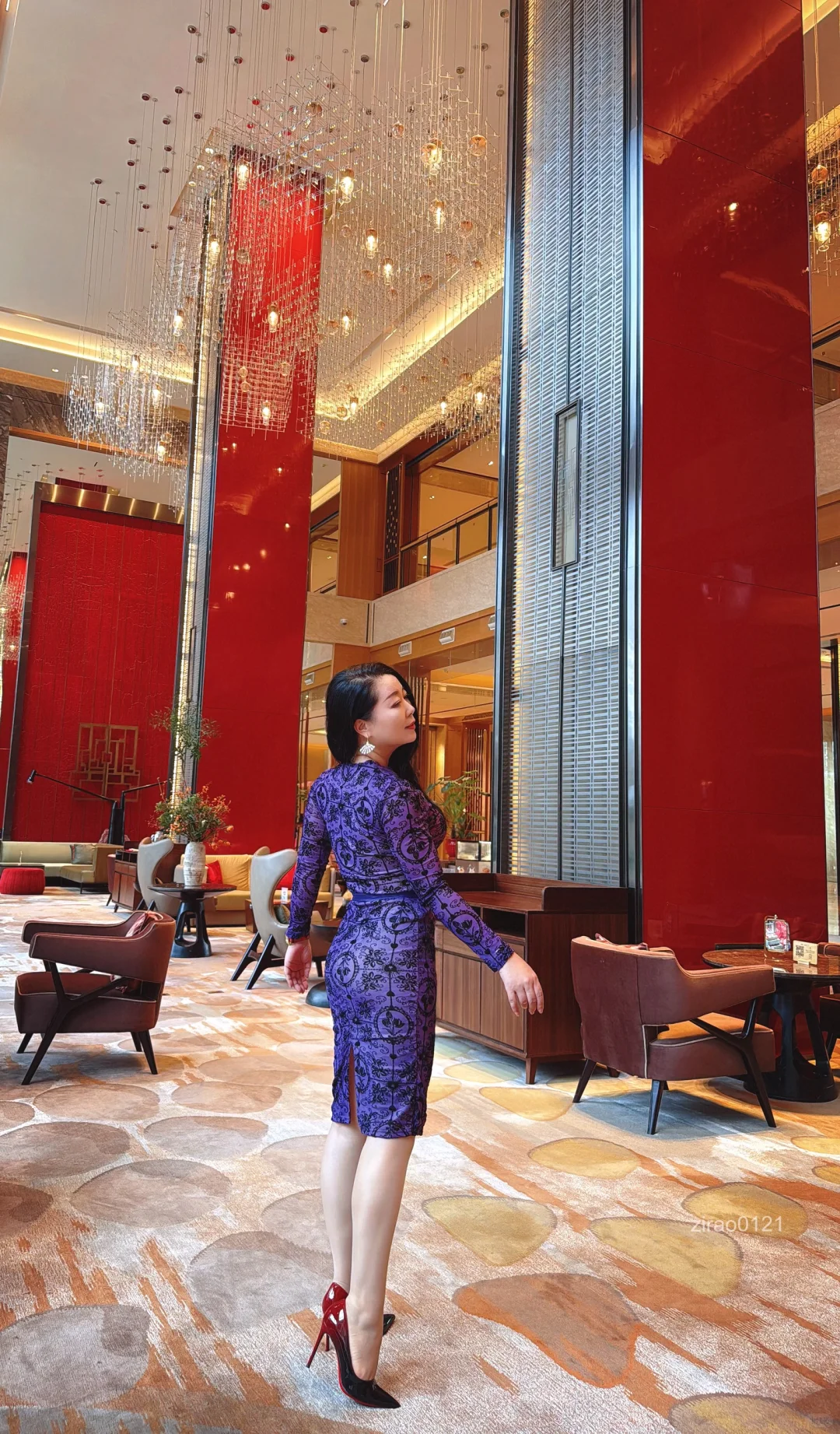 这条紫裙,我初见觉得有点繁复,不够优雅……不过拍出来还挺好看呢,还得是紫色啊