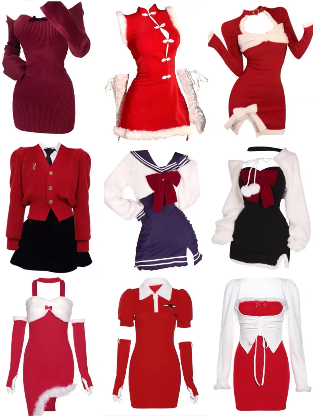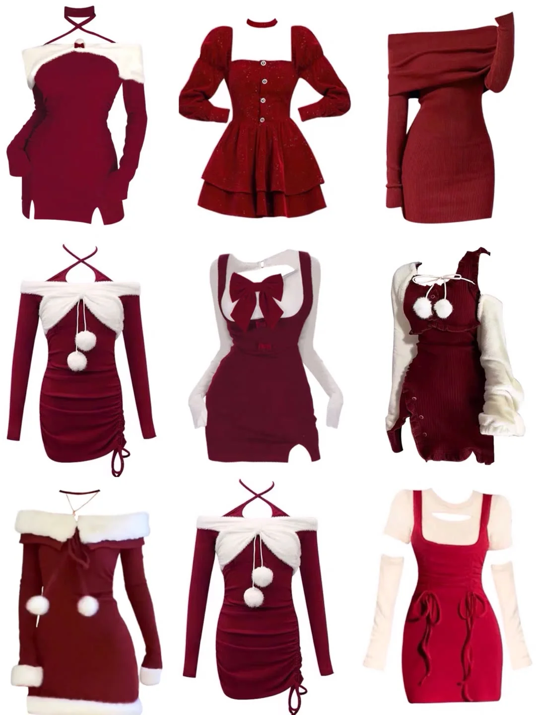 oc人狂喜系列纯欲辣妹风红色系裙子圣诞裙集