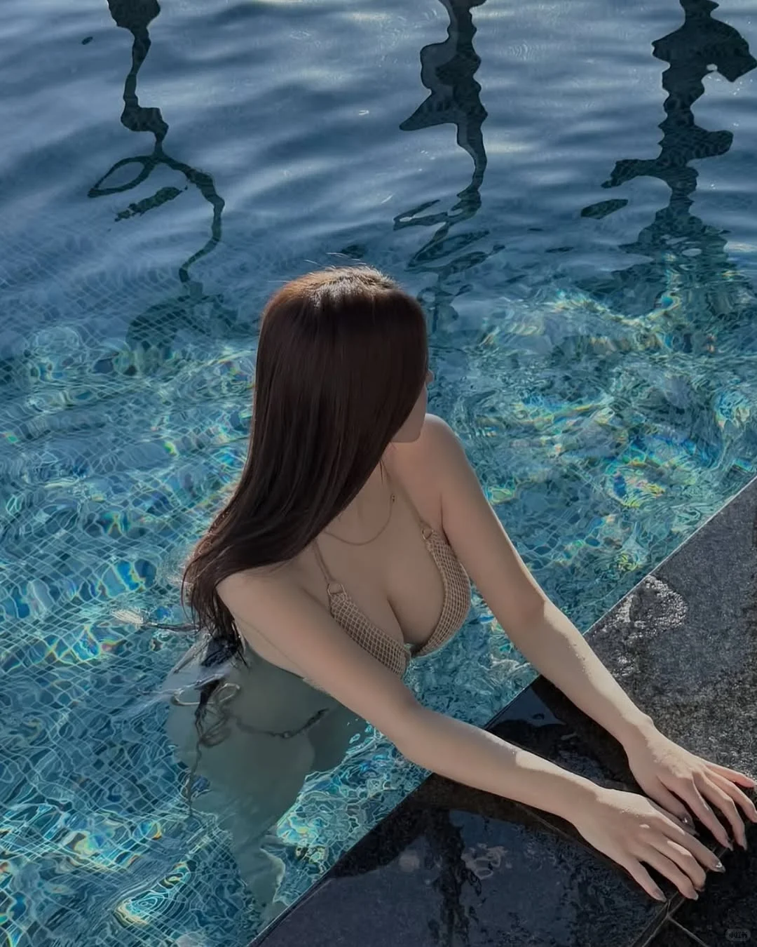 现在比基尼彻底自由!以前穿比基尼要贴两层硅胶胸贴,下水怕掉、抬手怕露边,试假T又怕游泳时 “揣俩硬球” 晃得慌,梁姨直接解锁我的理想🐻型!\n游泳超自在! 3 个月遵下水,胸型跟着动作自然波动,没有异物感,连游泳教练都没看出来,存活很稳!半年了没出现结节,泡水、暴晒都没影响,躺下会自然散开,这就是“妈生🐻”的安全感\n#女生必看 #小胸变大胸 #瘦人升杯梁姨 #霓珀美学咨询 #脂肪丰胸 #好身材 #翘臀 #腰臀比