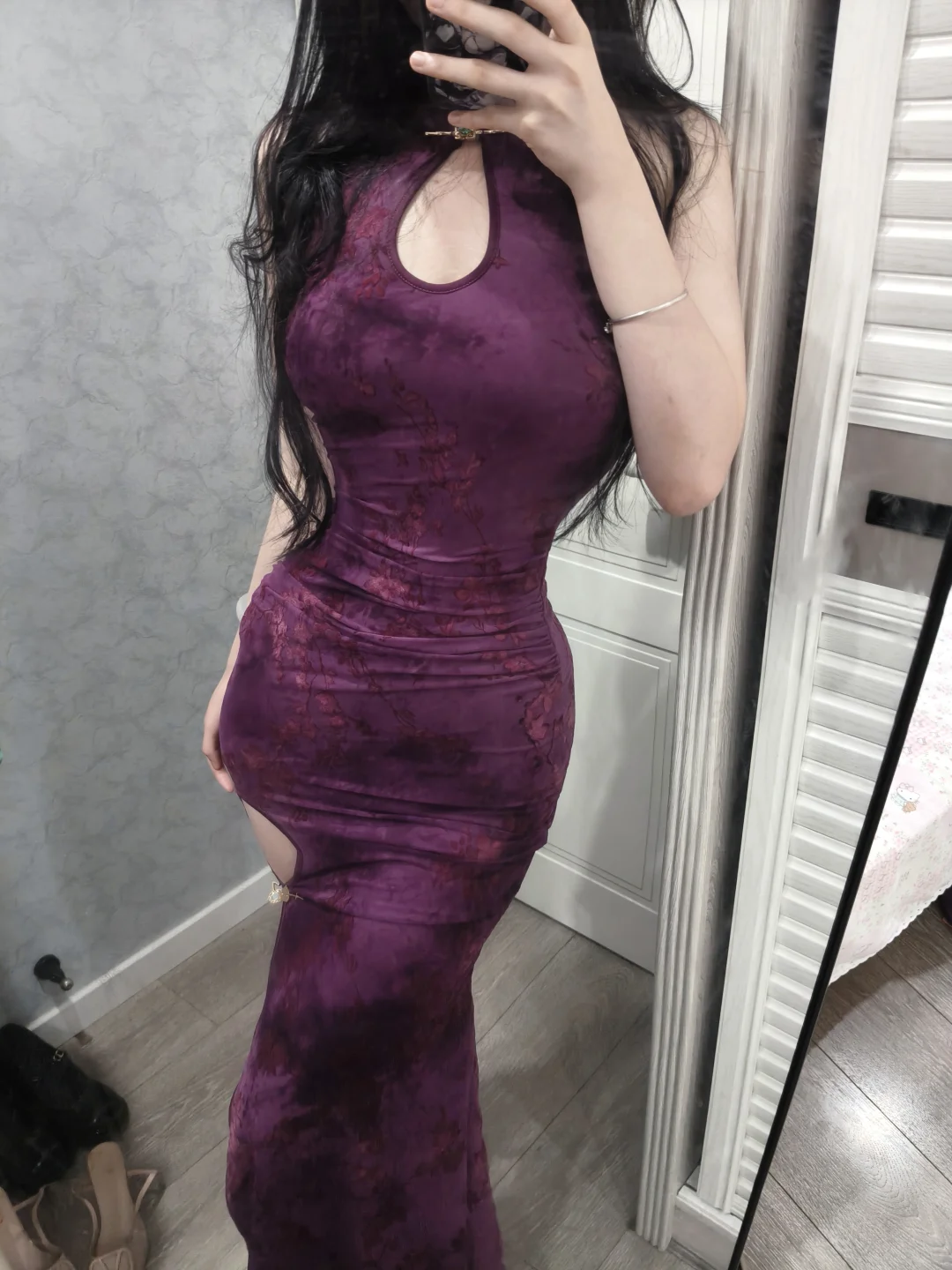好有韵味的紫色旗袍