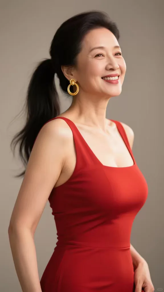 让人疯狂心动,48岁的红裙阿姨好有范