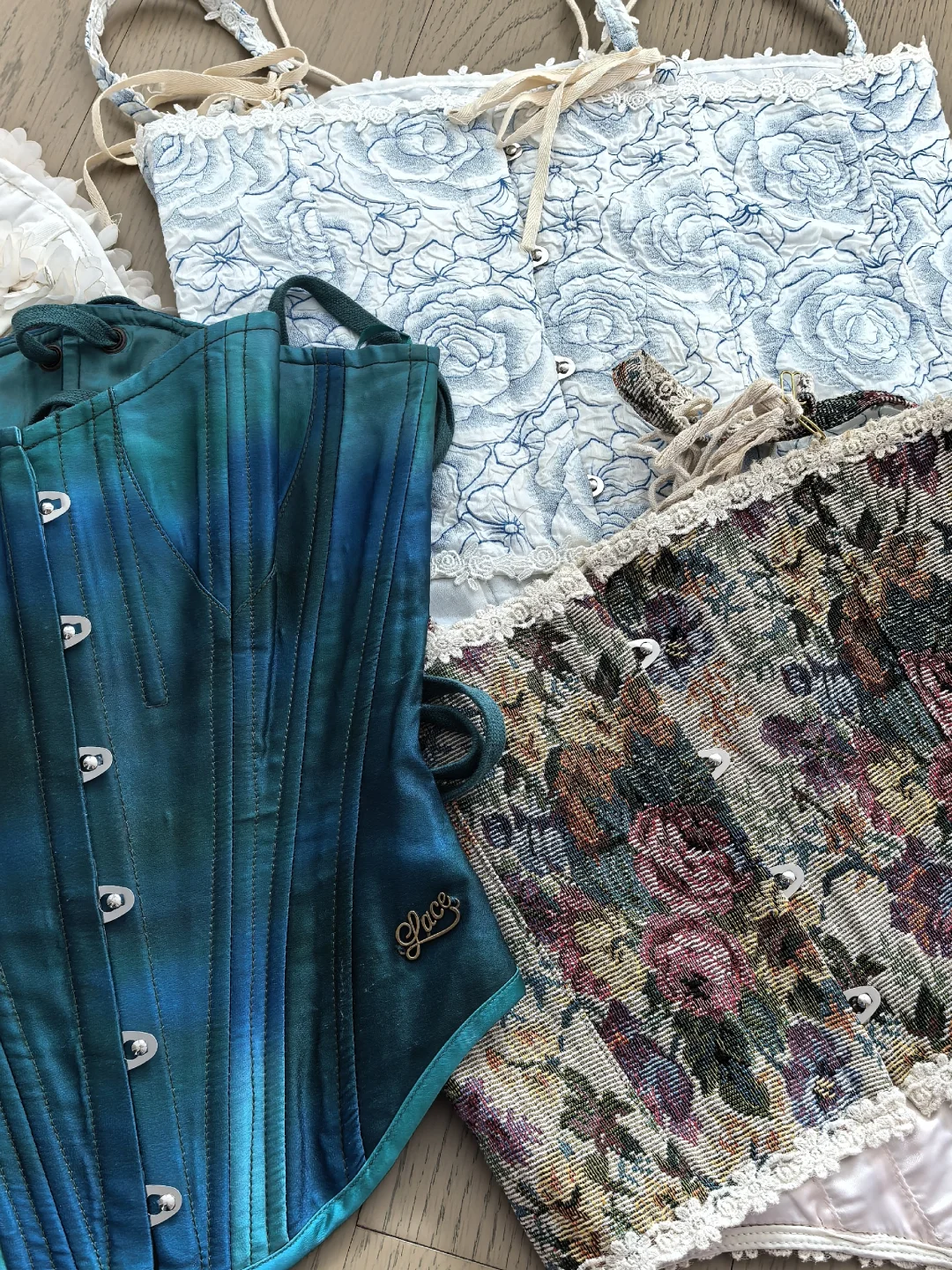 这类鱼骨胸衣的特点是,鱼骨数量多,密集,一般鱼骨会做到胸上面,有压胸感。设计款式偏复古,欧洲宫廷款,一般设计参考洛可可,文艺复兴时期服饰,常见的店家主要是lacemade 、芍子,风格比较华丽,适合度假,拍照穿。主要是钢扣和绑带结合☝🏻p2-3🤓☝🏻。这类鱼骨胸衣的参考主要是欧洲古代服饰,一般不带胸垫,穿着效果华丽,追求繁复的款式可选[坏笑R]一般💰在250-400之间可以买到比较好的