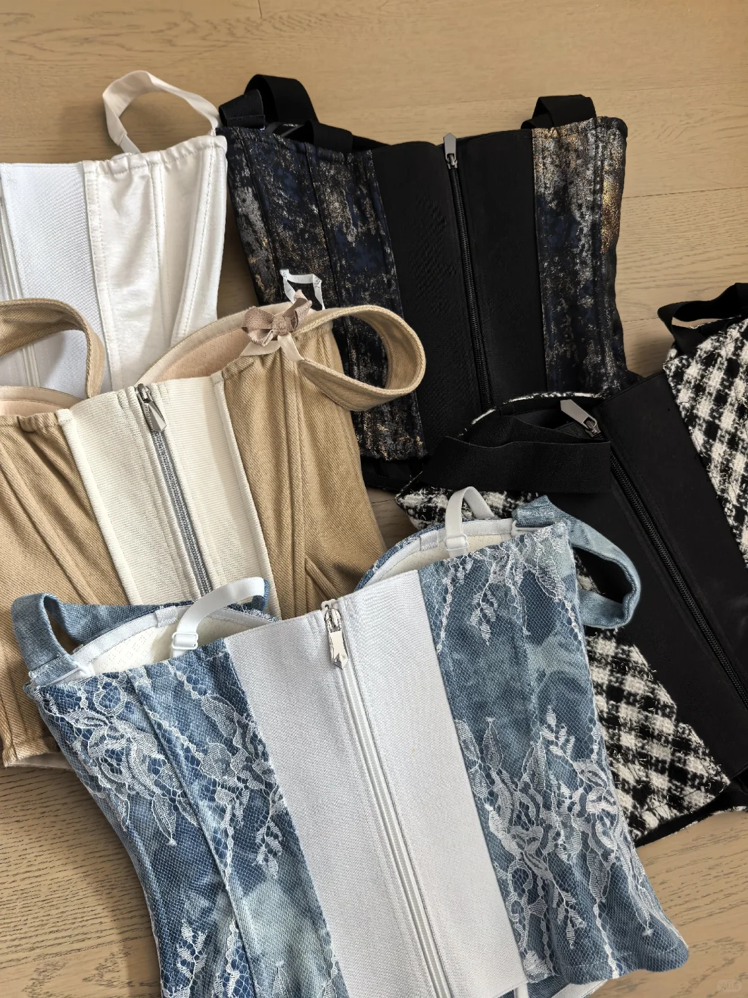 这种一般鱼骨只起到一个支撑版型的作用,内部一般用定型胶骨,鱼骨数量在3-5根左右,款式比较多,但是不会过于贴合人体曲线,对面料起到一个支撑作用,让偏薄,软的面料更有立体造型感。主要靠外部造型达到美化身材效果,本身不太塑型。想要款式不要塑型效果的宝子们可以选↑甜美的,御姐的,废土风,欧美风,什么风格都有🤓☝🏻