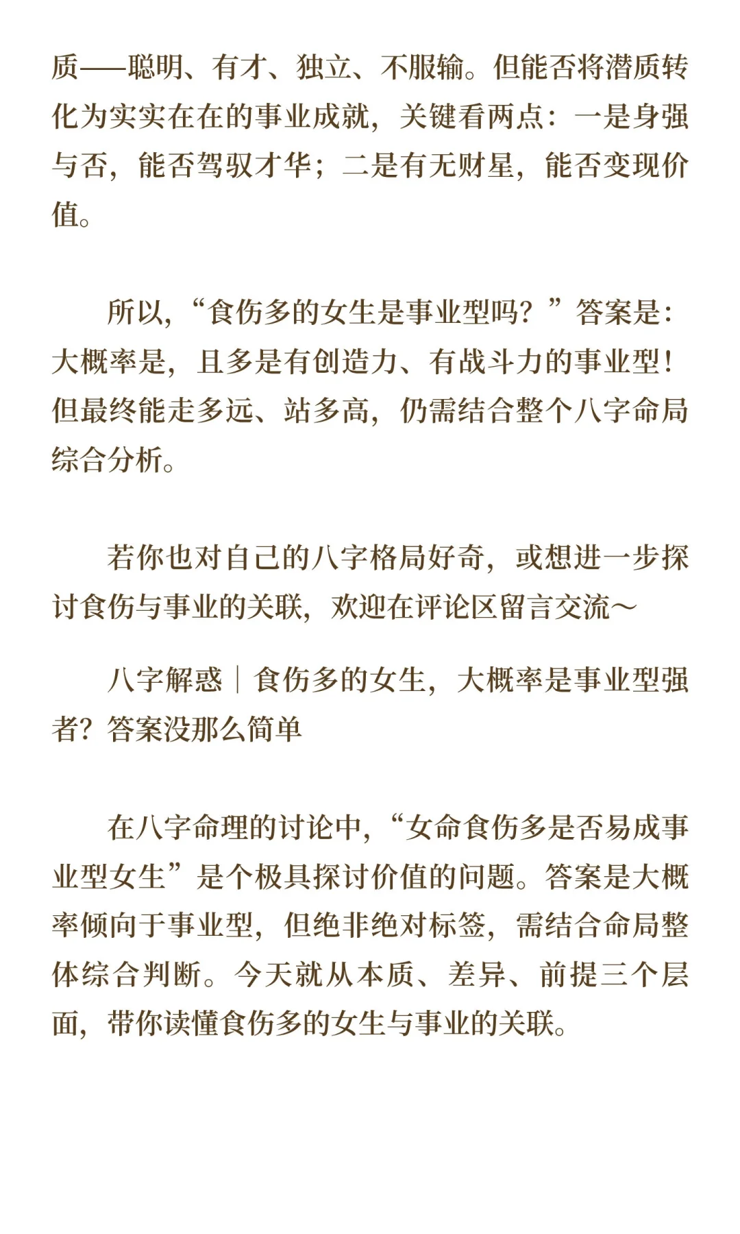 食伤多的女生大概率是事业型女性