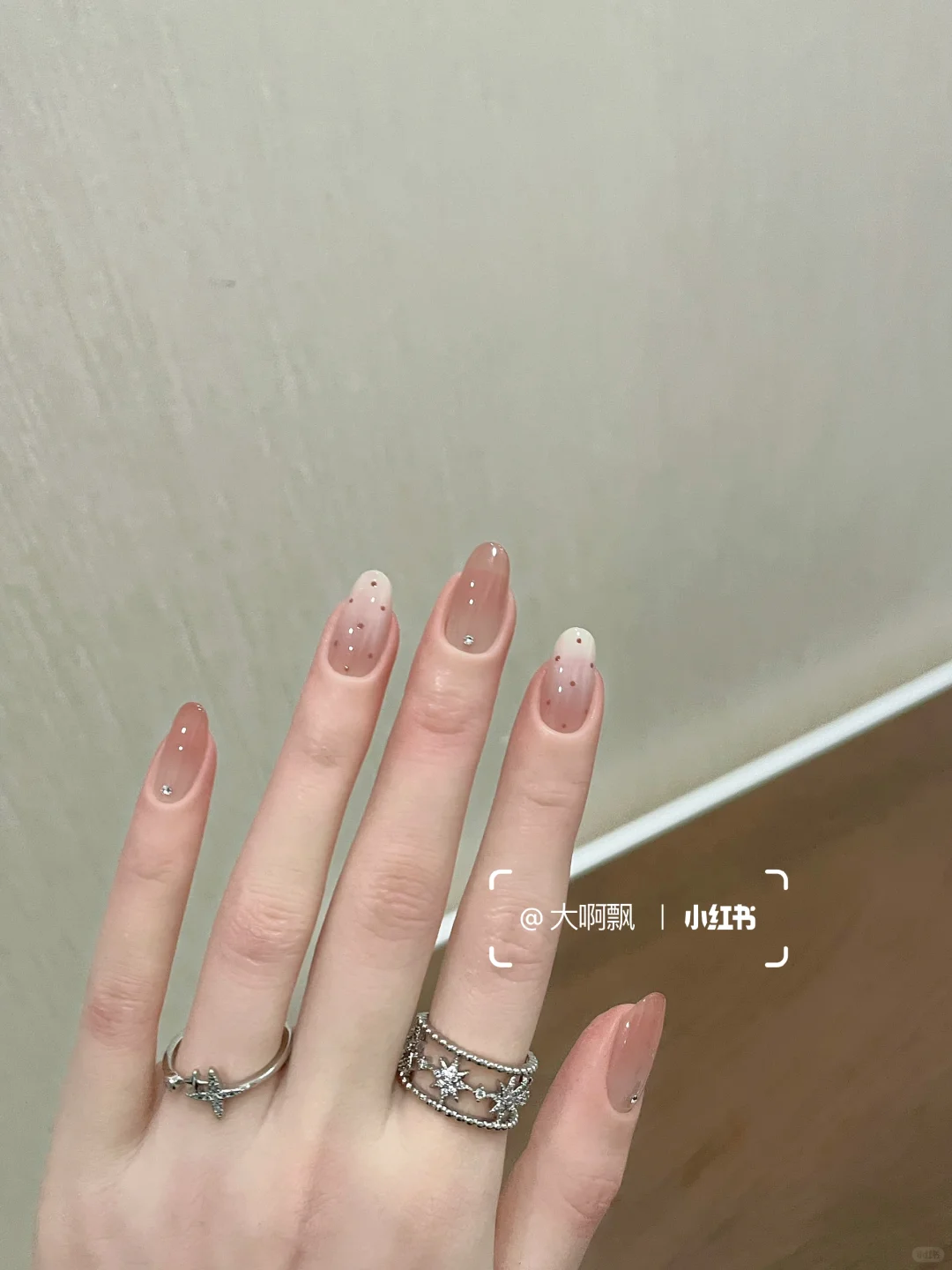 Nail☆彡纯欲温柔冰透豆沙渐变✨元气波点美甲