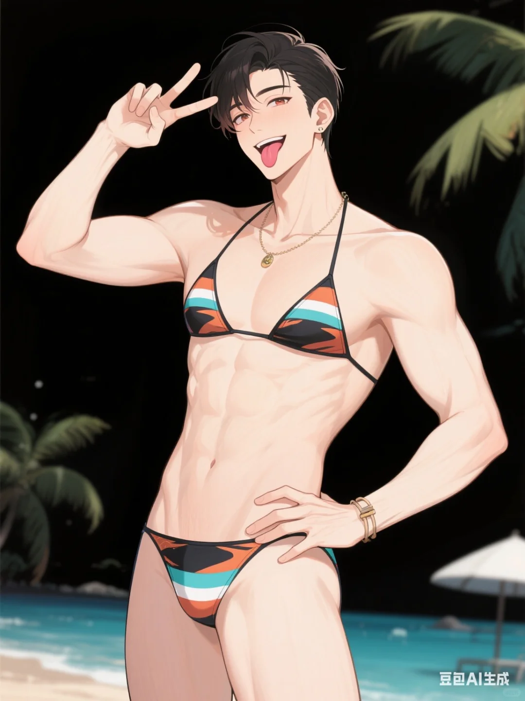 沙滩、海浪、阳光,还有他!