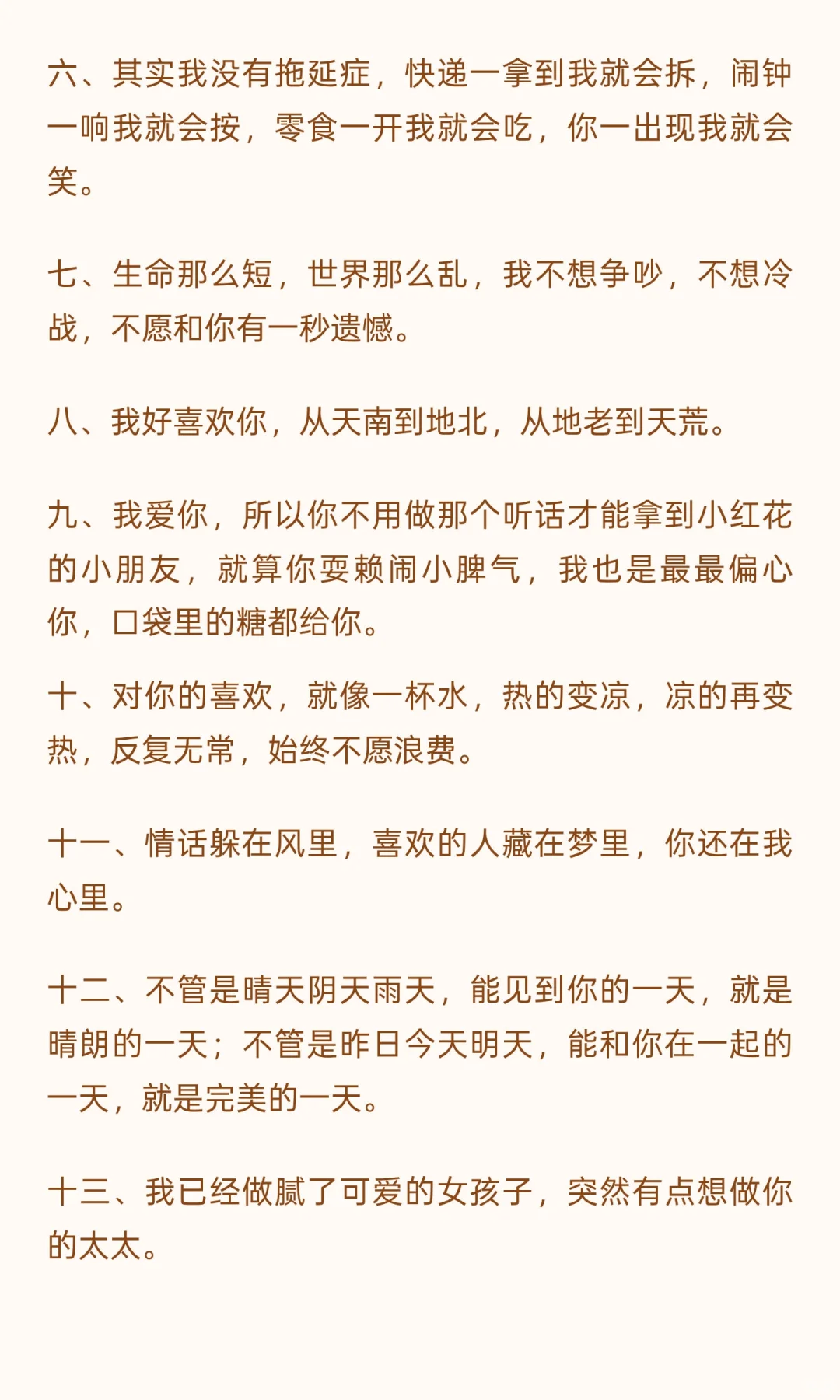 九、我爱你,所以你不用做那个听话才能拿到小红花的小朋友,就算你耍赖闹小脾气,我也是最最偏心你,口袋里的糖都给你。
