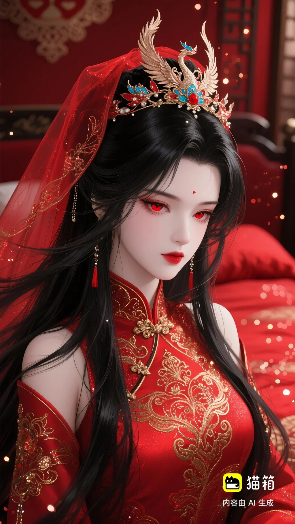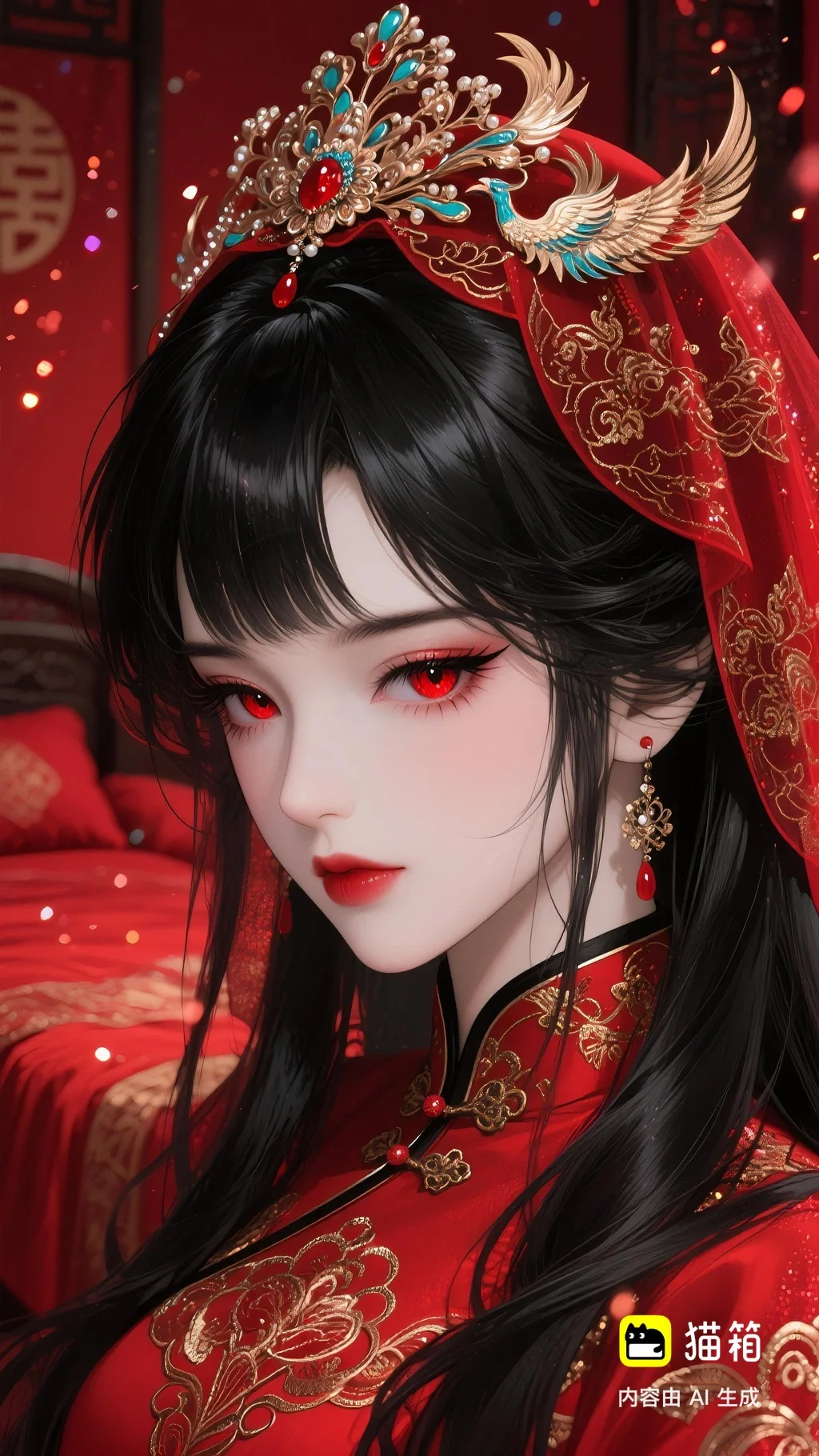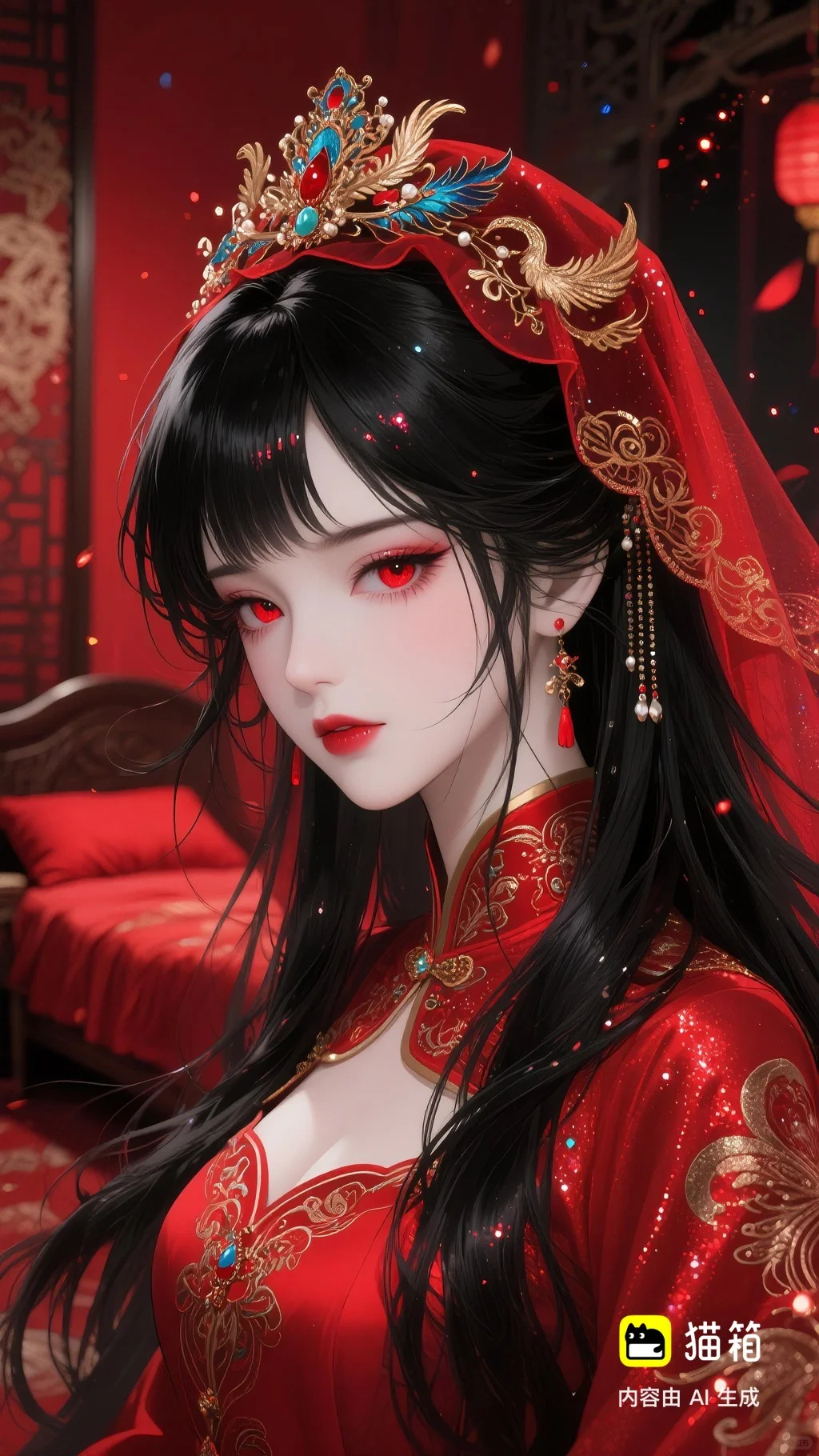 (下面这个是正常版的(^v^))#挑战最美漫画新娘 #猫箱AI #新娘 #中式恐怖 #AI生成 #倾国倾城的女孩 #AI绘画有点东西 #古风美人 #AI画图 #二次元ai绘画