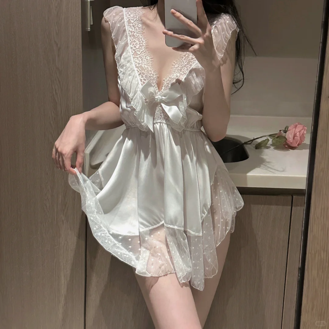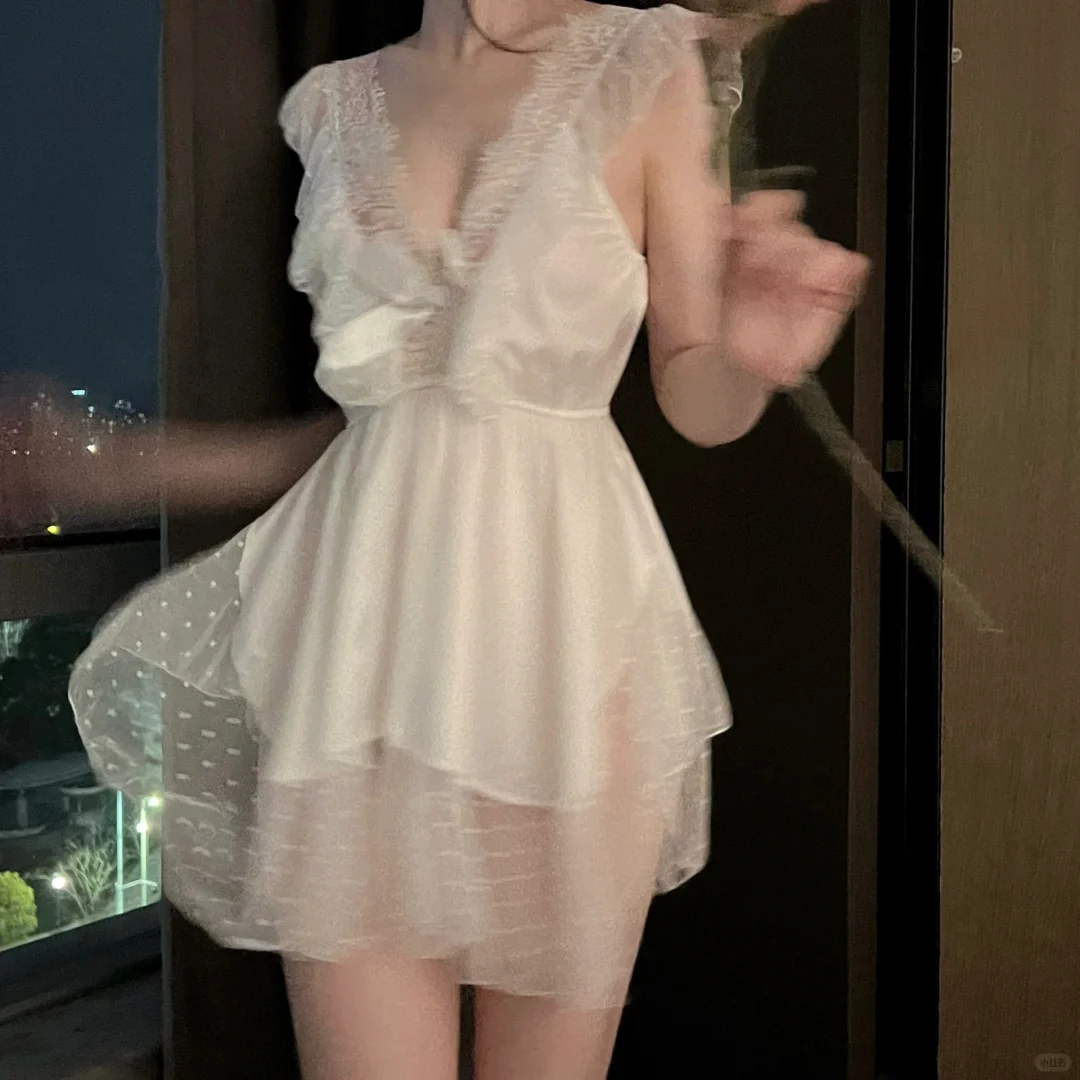 每个姐妹都应该拥有一件仙女睡衣,白色蕾丝睡裙真的超级仙超级漂亮,纯欲感满满。