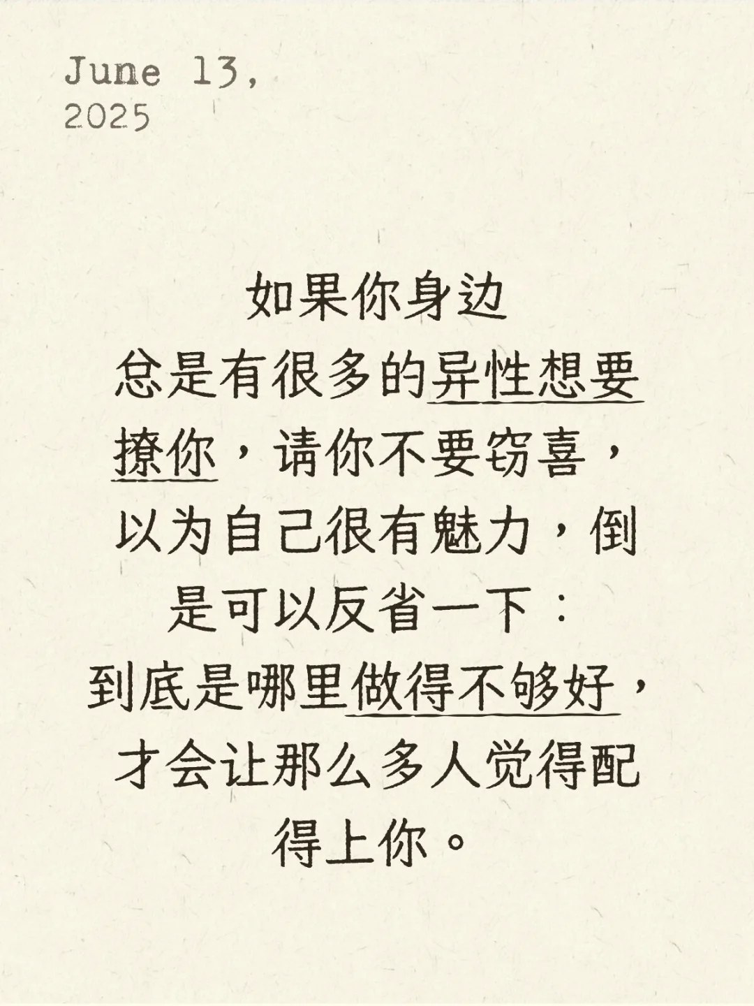 到底是哪里做得不够好,才会让那么多人觉得配得上你。