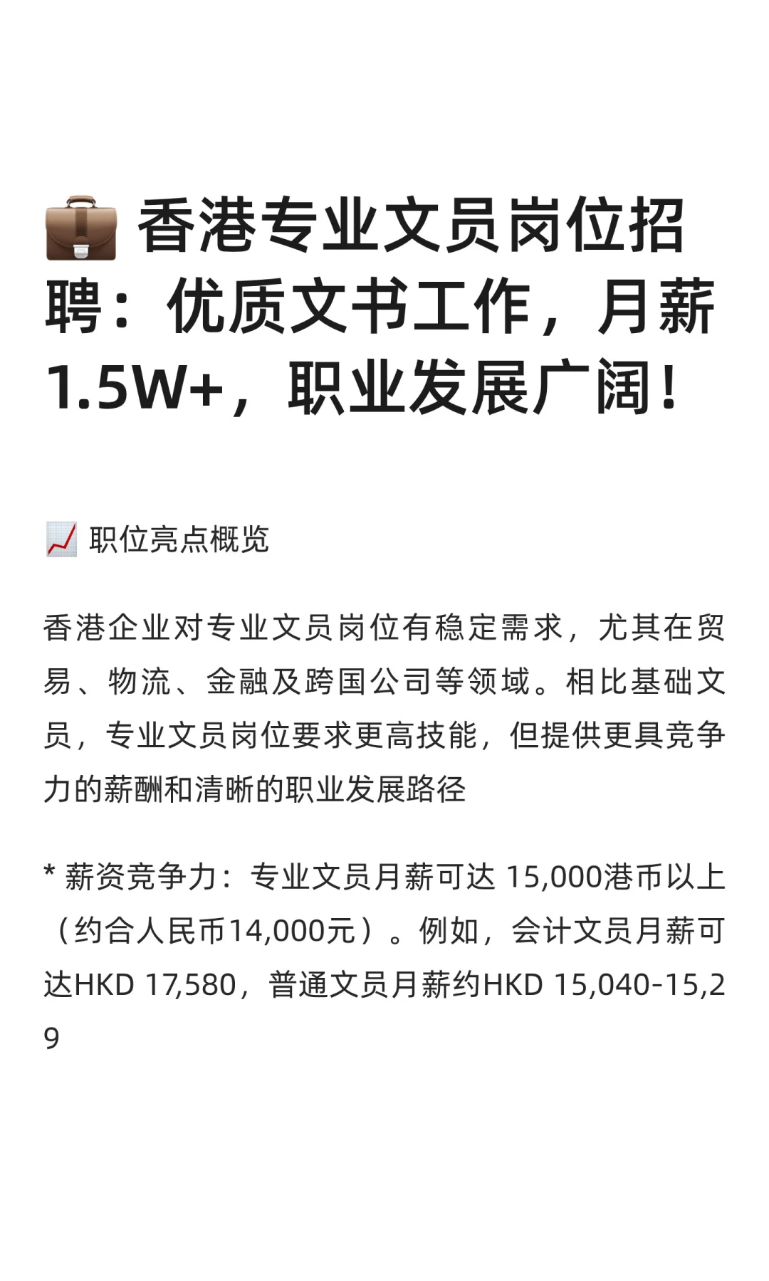 💼 香港专业文员岗位招聘:优质文书工作,月薪1.5W+,职业发展广阔!