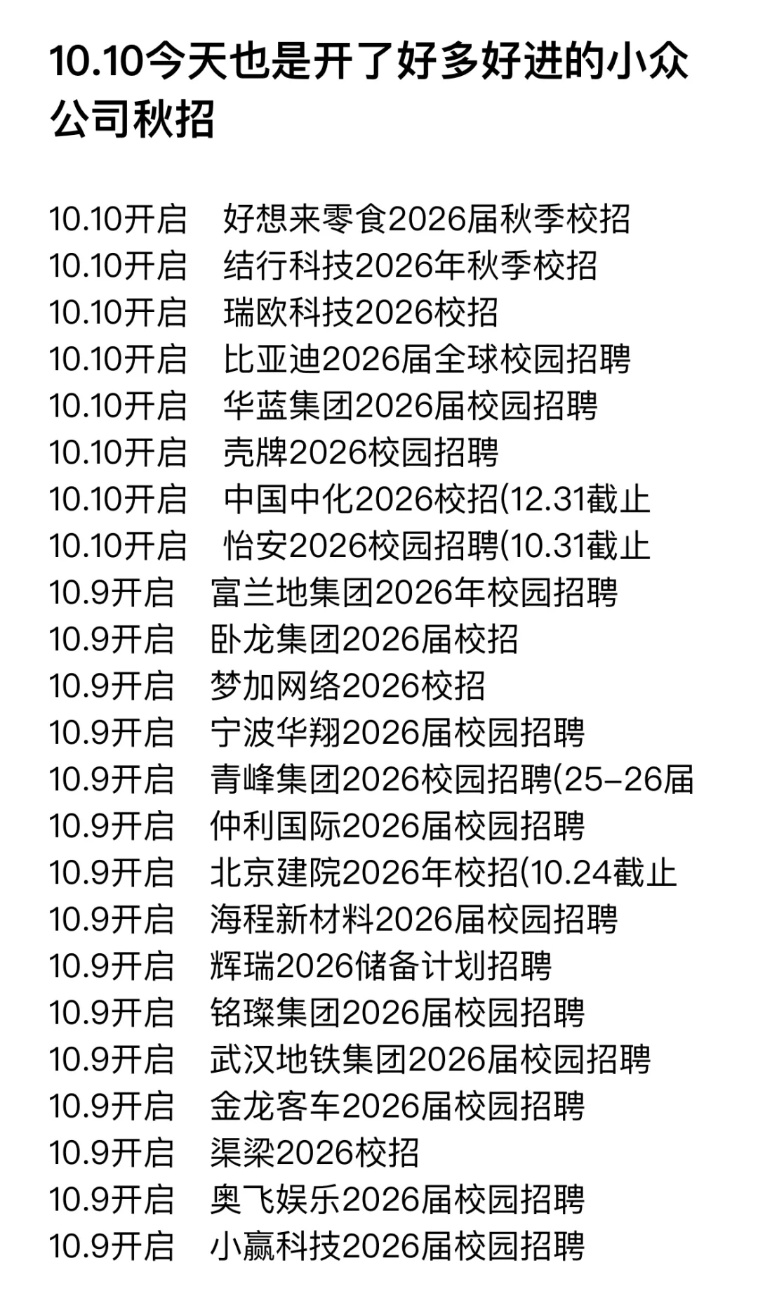 10.10今天也是开了好多好进的小众公司秋招