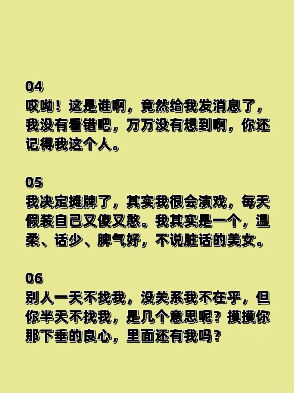 别人一天不找我,没关系我不在乎,但你半天不找我,是几个意思呢?摸摸你那下垂的良心,里面还有我吗?