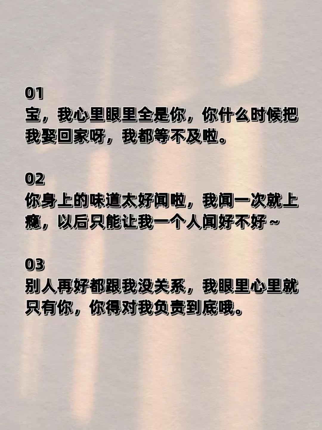 宝,我心里眼里全是你,你什么时候把我娶回家呀,我都等不及啦。