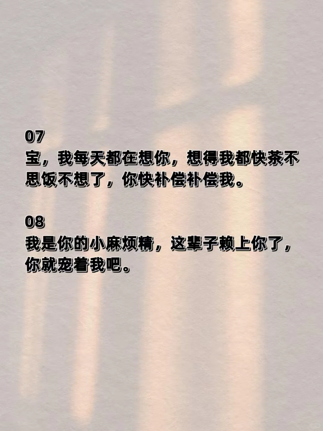 宝,我每天都在想你,想得我都快茶不思饭不想了,你快补偿补偿我。