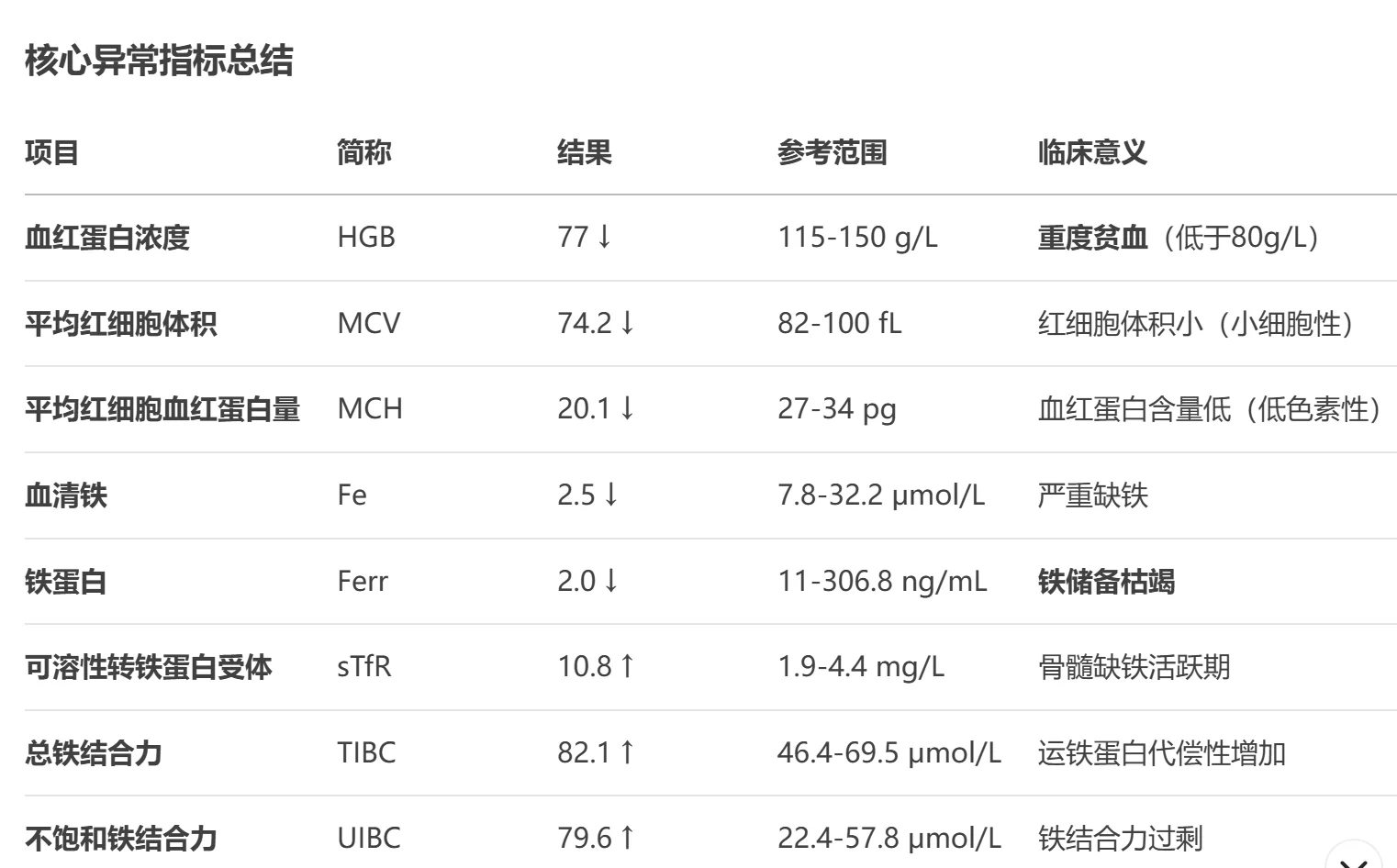 虽然猜到是缺铁性贫血,血红蛋白比半年多前测的还要再低了6个点。更没想到的是铁居然这么低。要不是铁片先开了,估计医生看到报告,要让我输血吧。