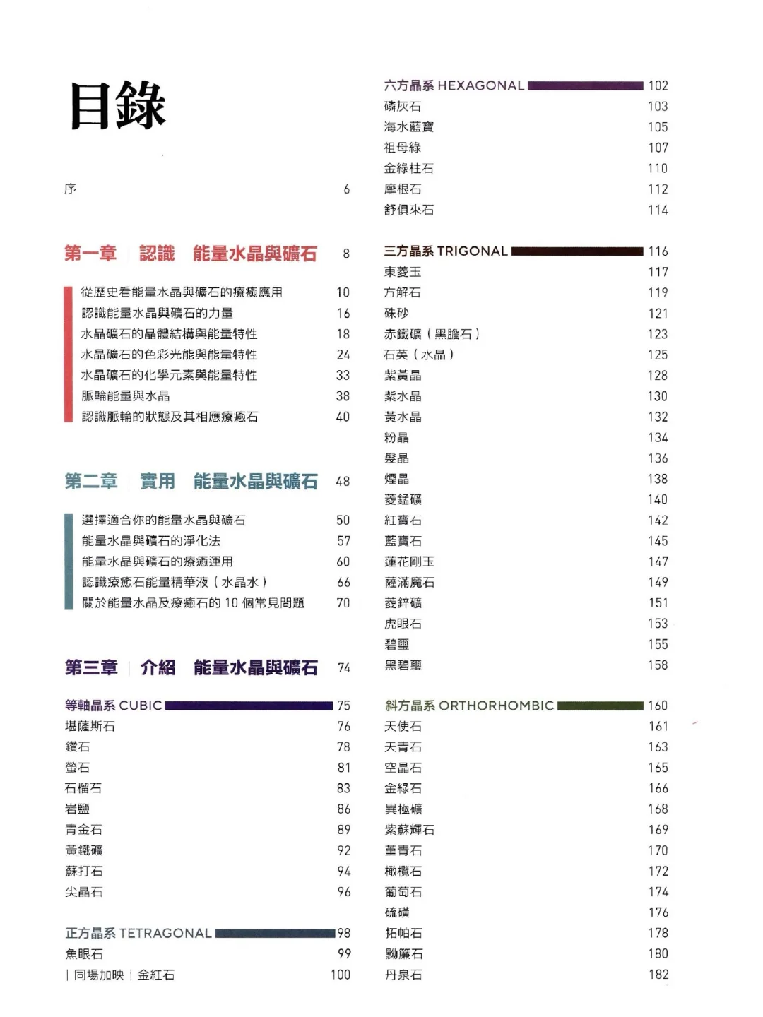 1)修正:旧版中,东陵玉和赤铁矿都被归纳在六方晶系的类别里。在新版中,这两种矿石被重新归纳进三方晶系;